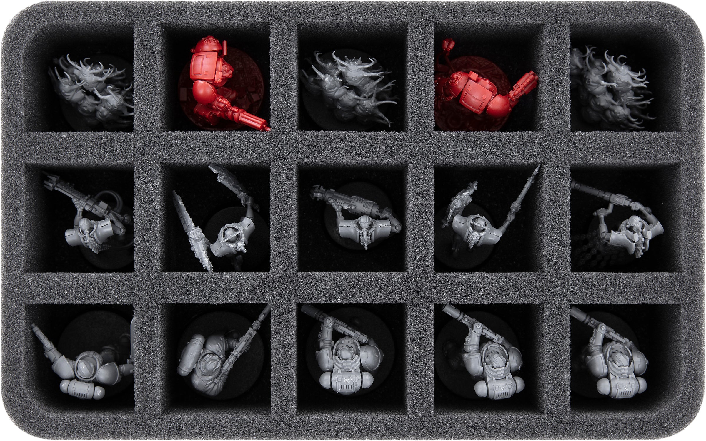 • 2 Half-Size foam trays, each with 15 compartments for e.g. Necron Warriors, Immortals, Deathmarks (HS060A039)