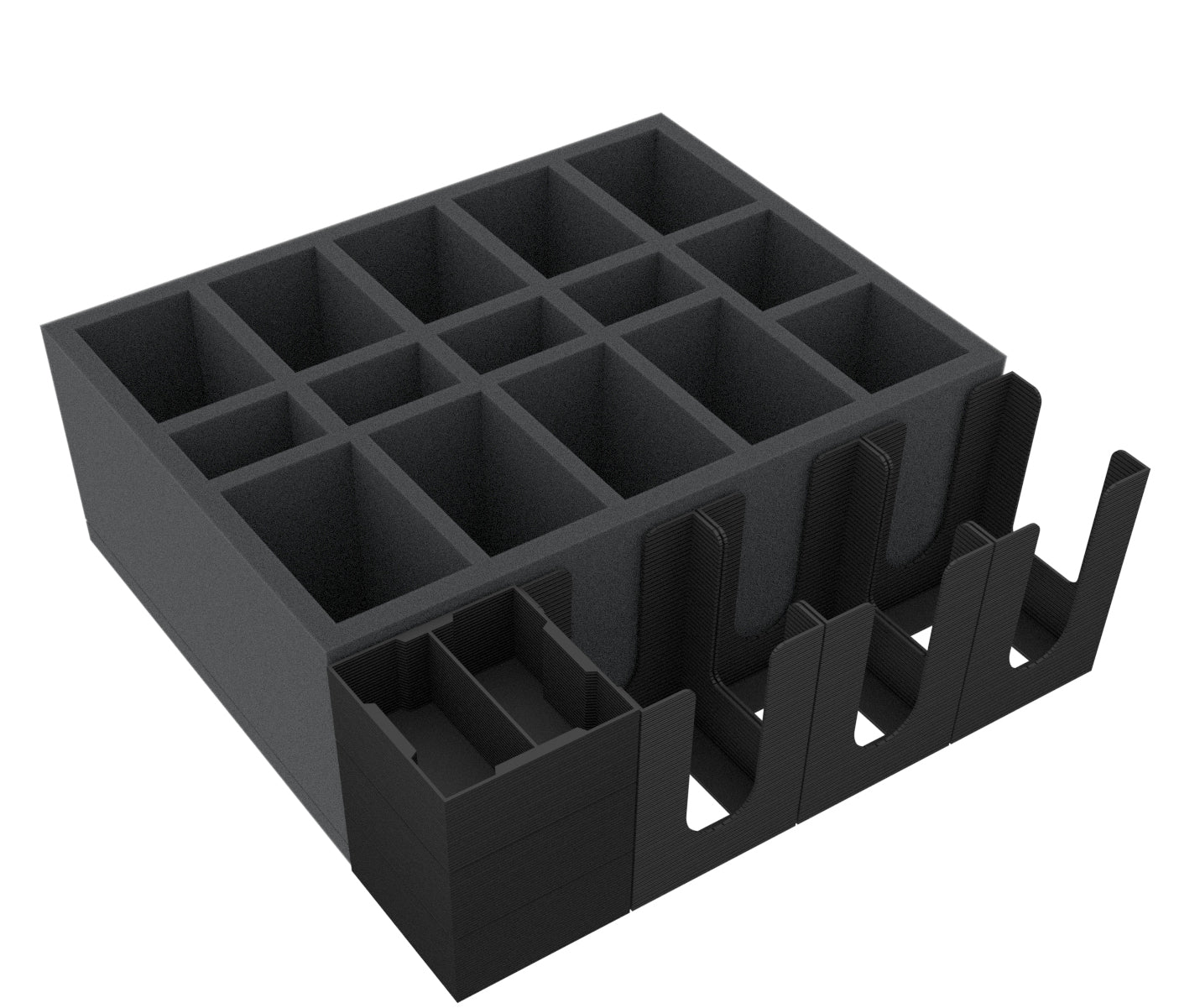 Custom-fit cut compartments for each figure ensure that your miniatures don't slide around and get damaged during transport. The combination of plastic trays and foam inserts makes it possible to store the figures as compactly as possible, saving lots of space in the box. The soft, fine-pored foam reliably protects against breaking details, scratches, or chipping paint, should you have painted your figures.