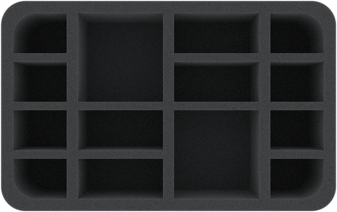 - The individual compartments have a usable height of 60 mm. A 10 mm thick foam base adds the mat up to a total height of 70 mm.
