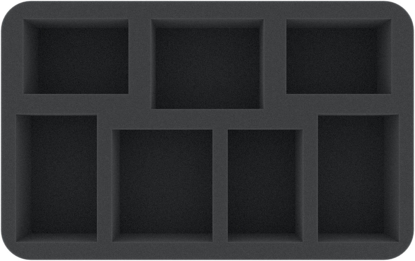 On this Feldherr foam tray you have space for up to 7 miniatures of your Warhammer 40.000. The insert is especially suitable for storing the Meganobz, Big Mek with Snotzogga and models with similar dimensions.