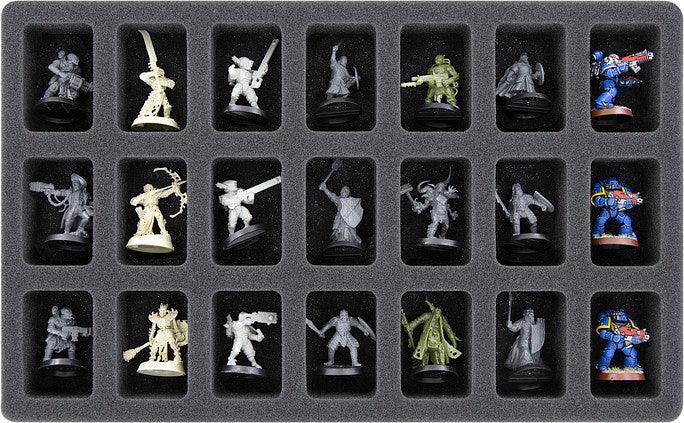 - 1 foam tray with 21 compartments for miniatures on 25 mm bases (IGMFJX035BO)