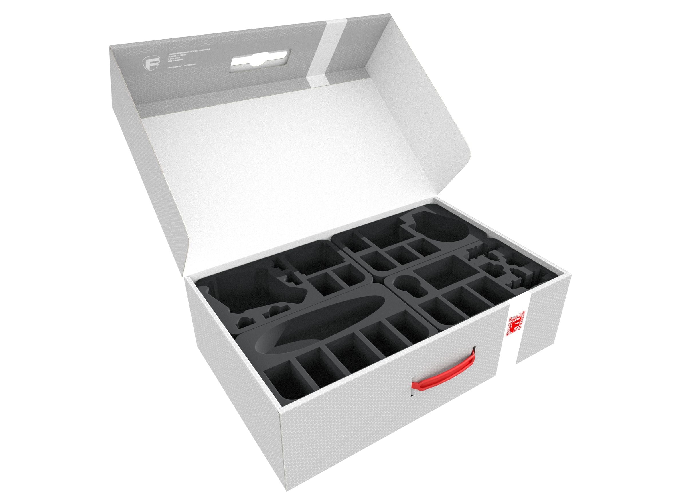 The Feldherr Storage Box DSLB150 provides storage and transport solution for a huge Rebel Fleet from Star Wars X-Wing. The box is perfect for to fit one Tantive IV, one Rebel Transport, one Millennium Falcon, one YT-2400, one Ghost, two K-Wing and 44 Fighters in it.