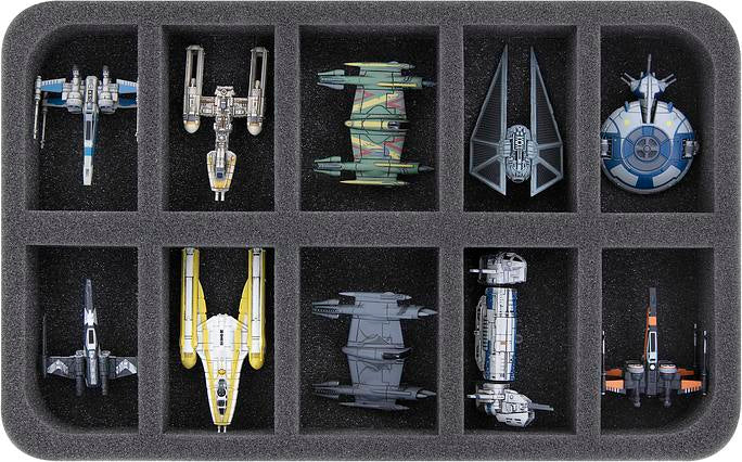 - 1 x HSBE050BO foam tray for 10 Star Wars X-WING Star Ships on bases