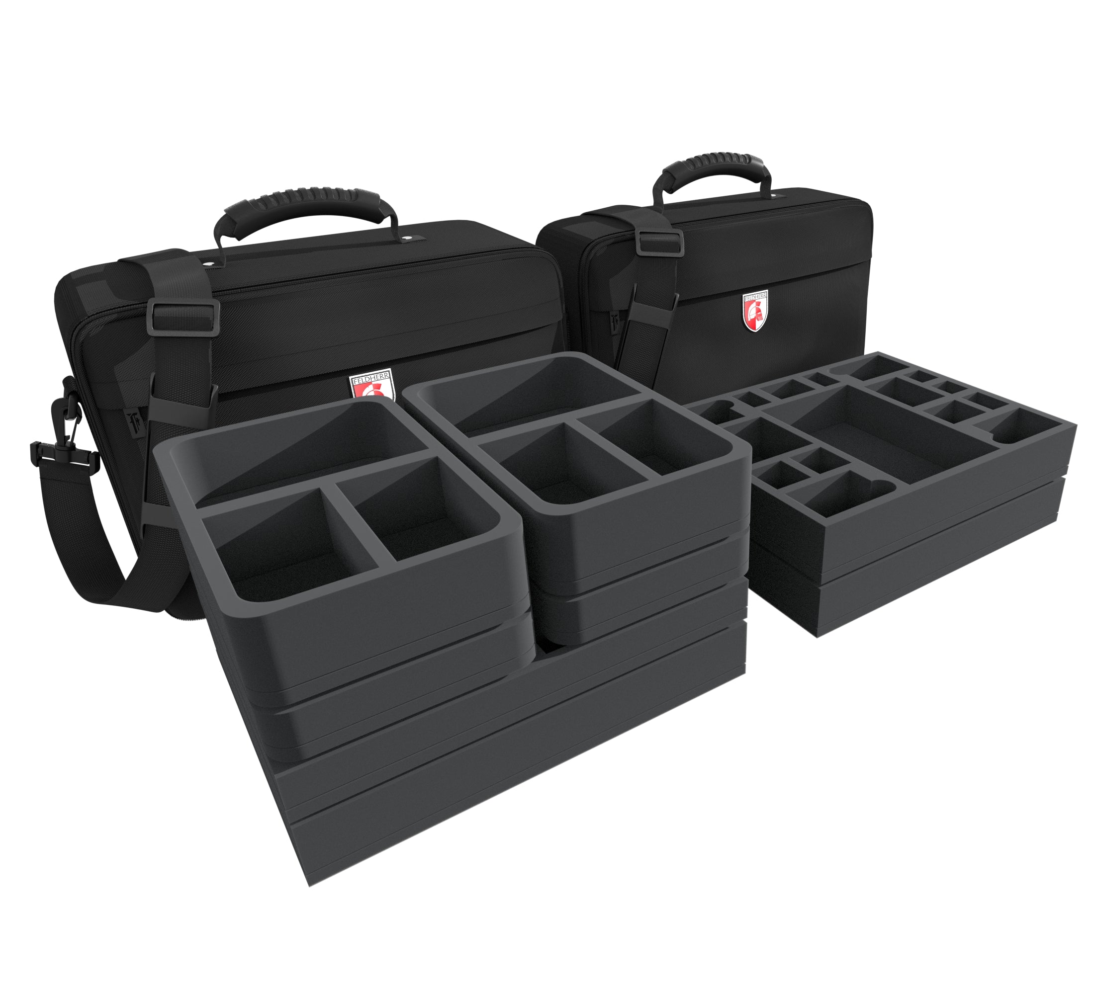 To ensure that the figures stay first class, you don't lose track of everything and to transport everything comfortably to your friends, we have created this comfortable carrier bag set with the matching foam trays.