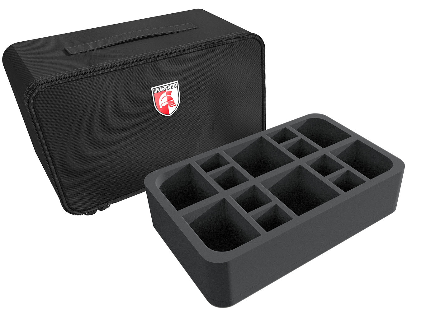 Don't worry; we have the right solution for your model athletes. This convenient Feldherr MINI PLUS bag, including custom foam, offers space for up to 30 miniatures plus game material. Thanks to the high-quality Feldherr foam trays, you can transport your figures and game material carefree and neatly sorted to the next Rumbleslam event!