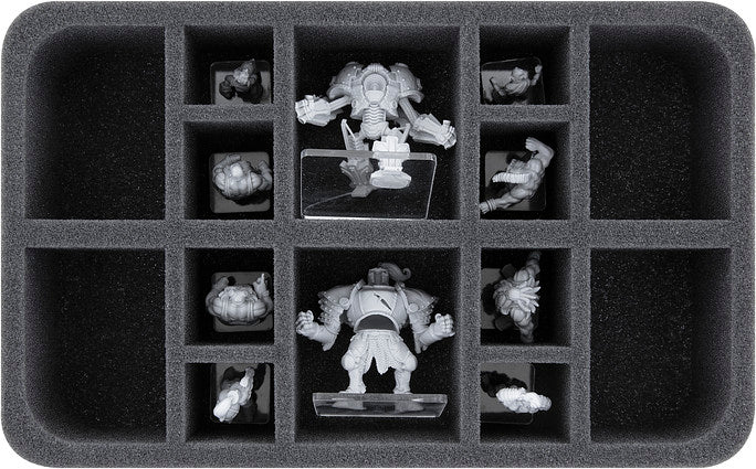 • 1 Half-Size foam tray with 14 compartments for miniatures on 25 and 50 mm base (HS065A013)