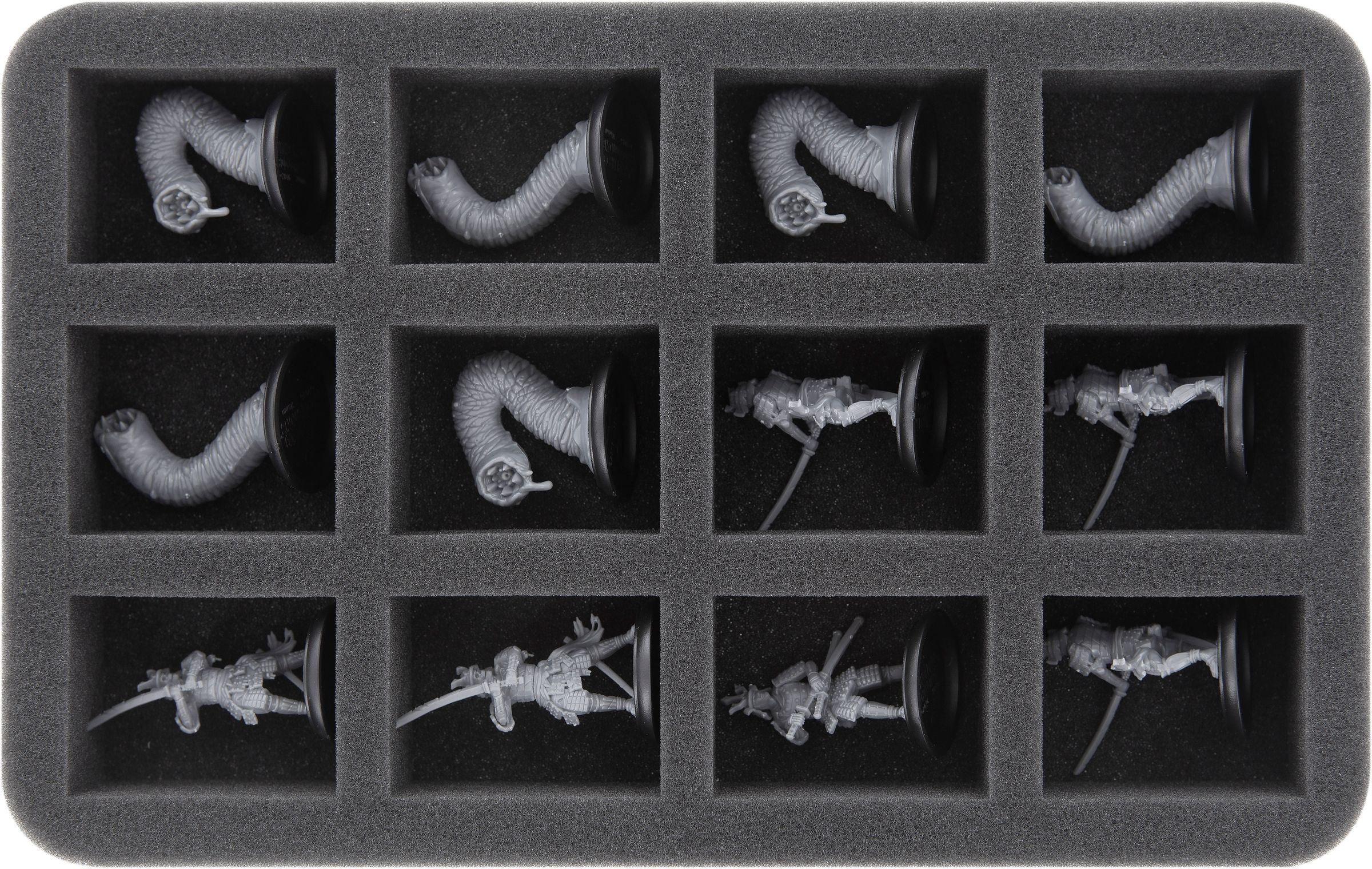 - 1 foam tray with 12 compartments for small miniatures (HS040I012BO)