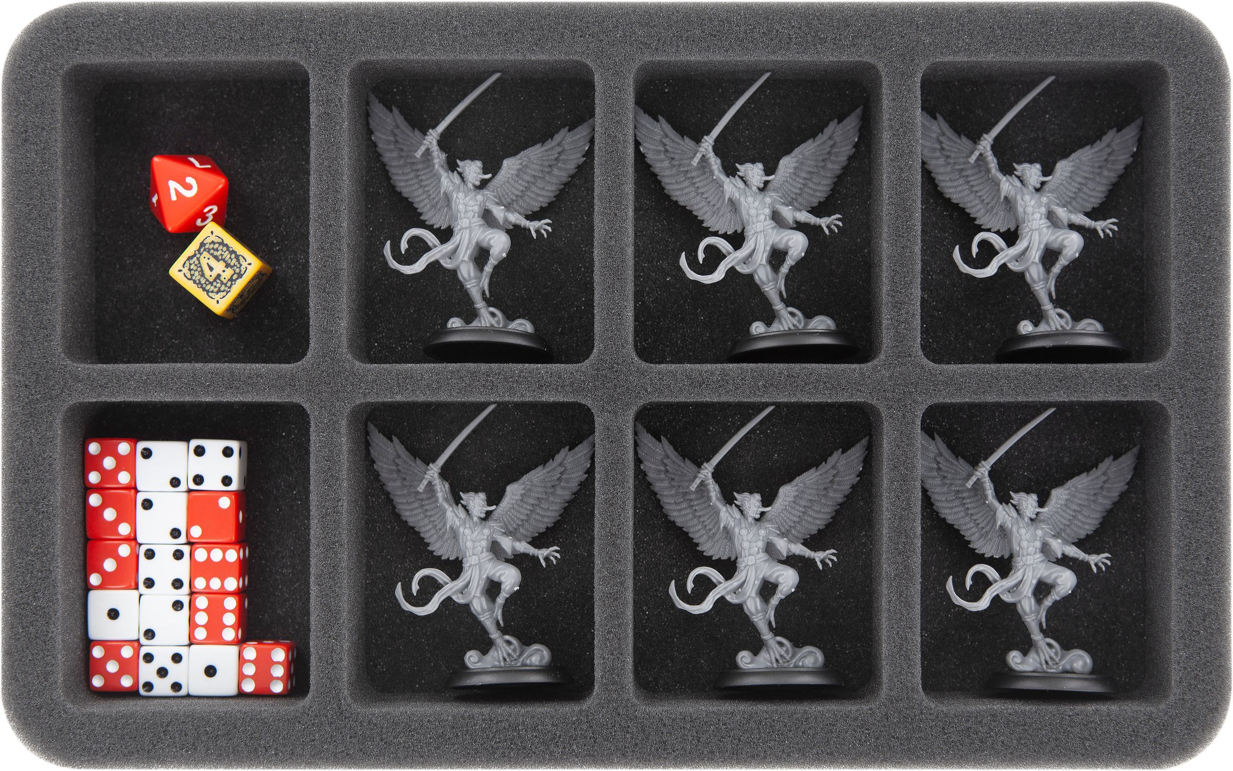 - 1 foam trays with 8 compartments each for medium-sized miniatures (HS040BF02BO)