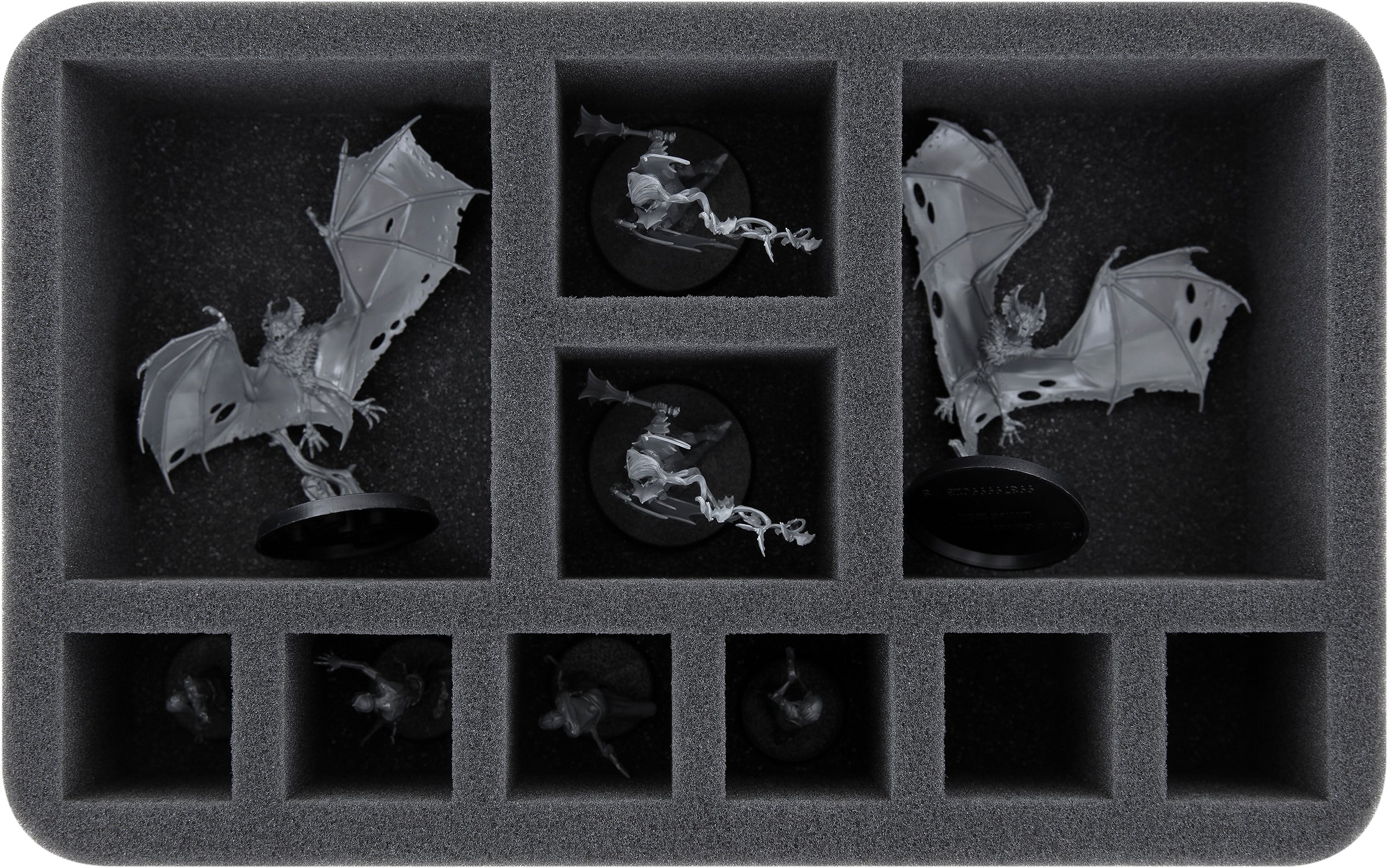 - 1 Half-Size foam tray with 10 compartments for e.g. Fell Bats, Vampire Lord (HS070A030)