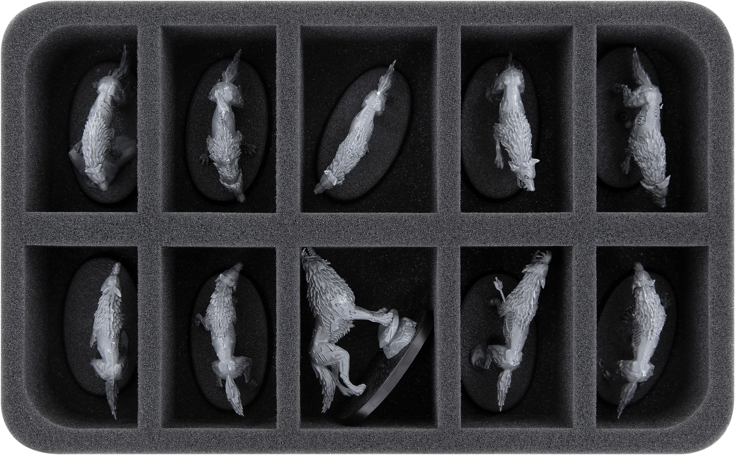 - 1 Half-Size foam tray with 10 compartments for e.g. Dire Wolves (HS050A077)