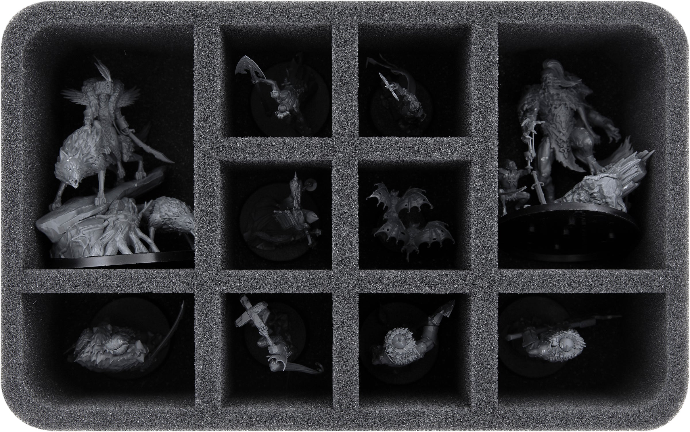 • 2 Half-Size foam trays with 10 compartments each for e.g. Belladamma Volga, Radukar The Wolf, Radukar The Beast and Radukar's Court (HS080A008)
