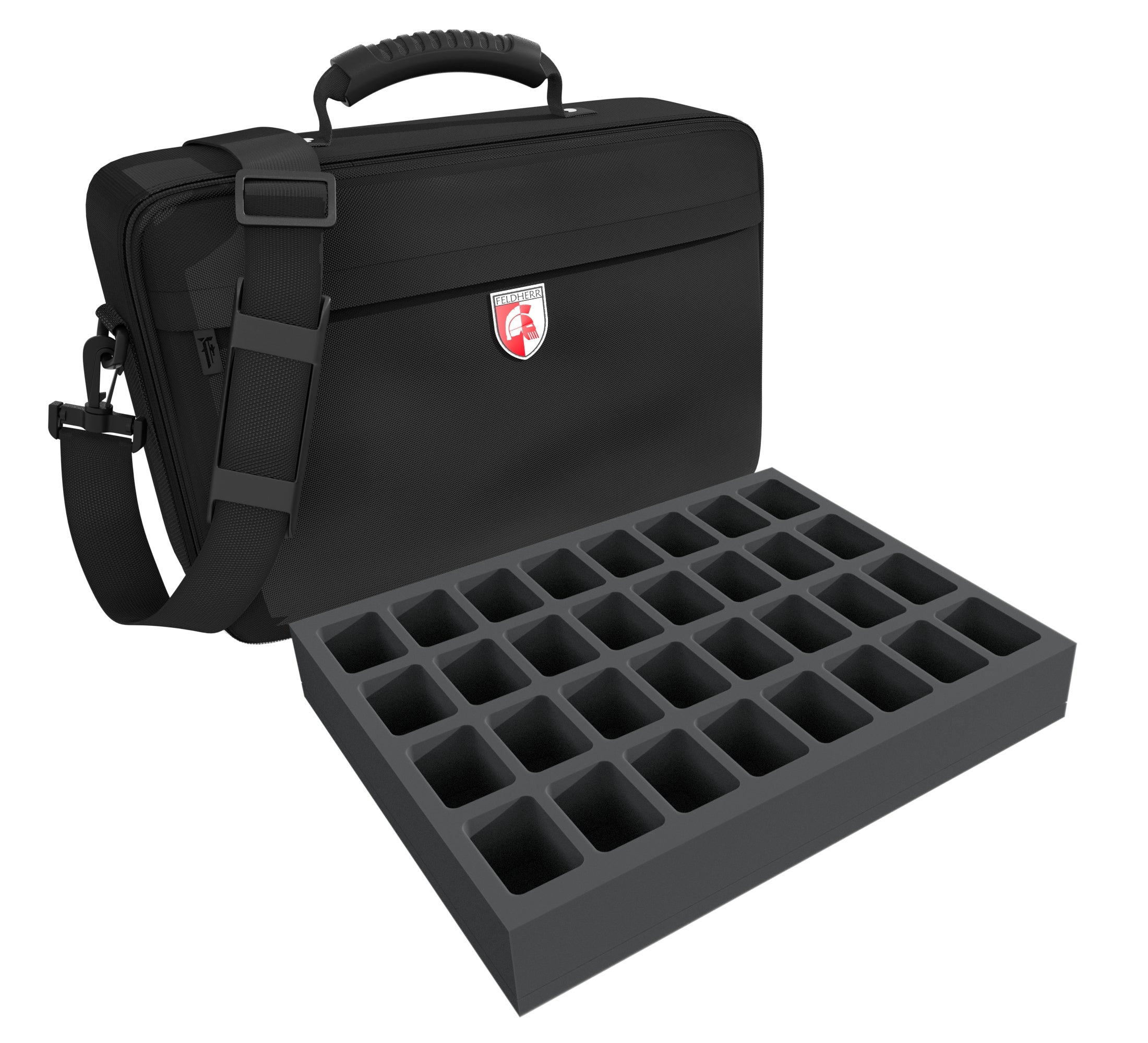 The Feldherr MEDIUM bag is made of particularly robust fabric and ensures that its contents are optimally preserved from external influences. Padded side panels and a reinforced base additionally ensure that your miniatures are optimally protected from external influences even when transported by car or train.