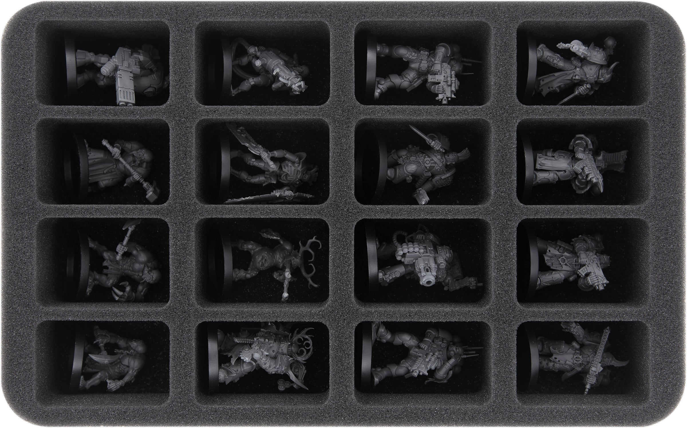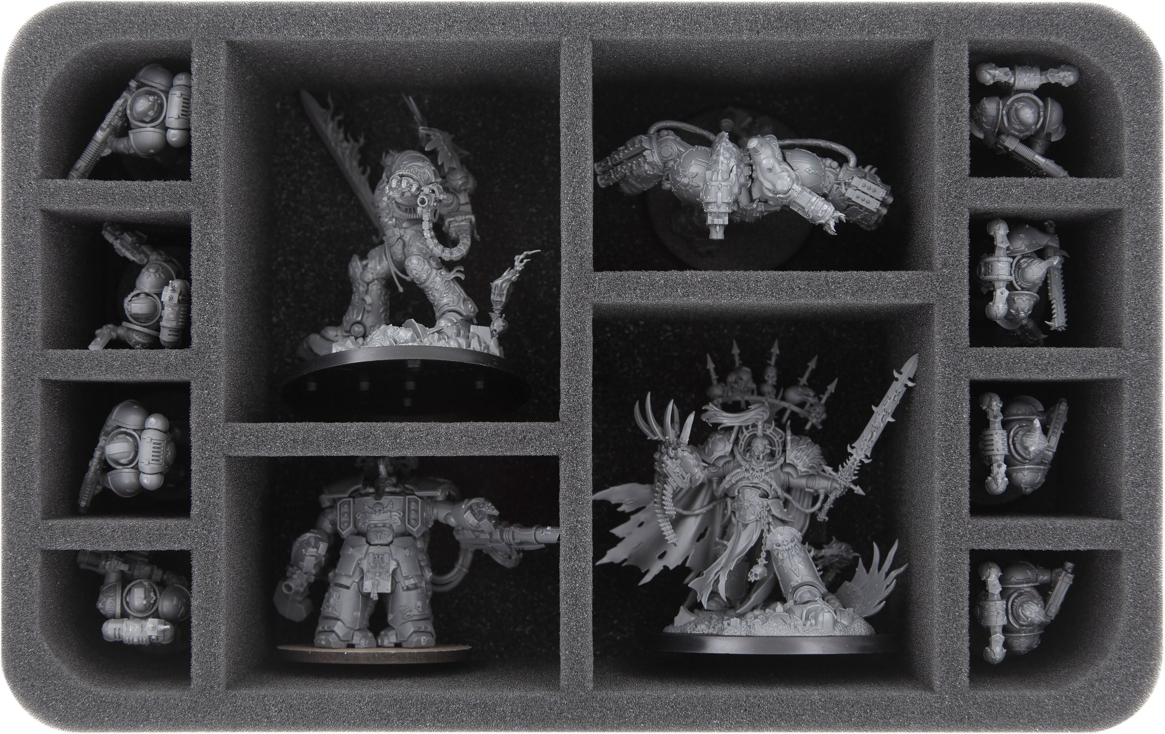 - 1 Half-Size foam tray with 12 compartments for bulky miniatures like Terminators + Cultists with heavy weapons (HS050A060)