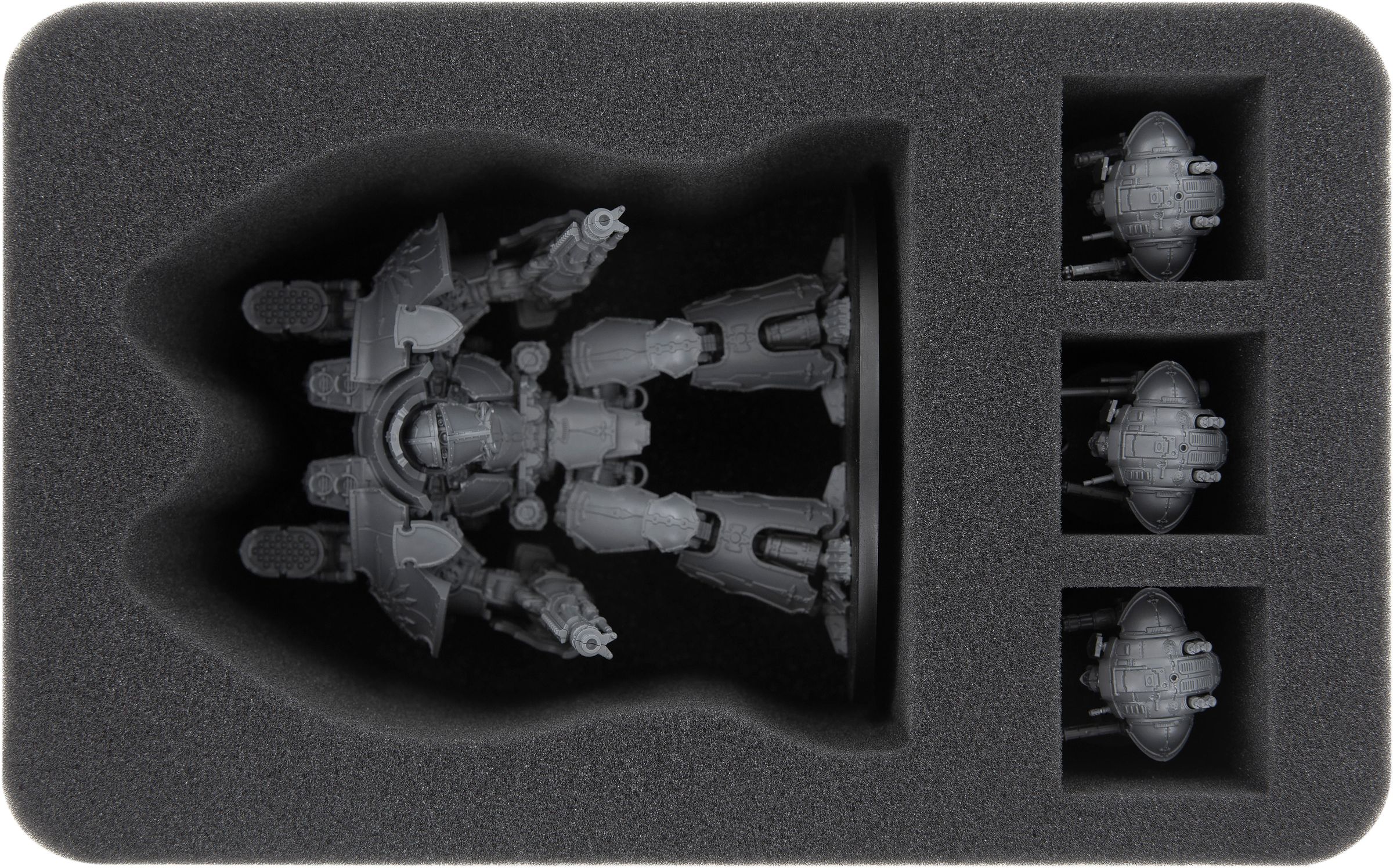 • 1 Half-Size foam tray with 4 compartments for e.g. 1 Nemesis Dreadknight (or Grand Master variant) + 3 infantry units (HS110A006)