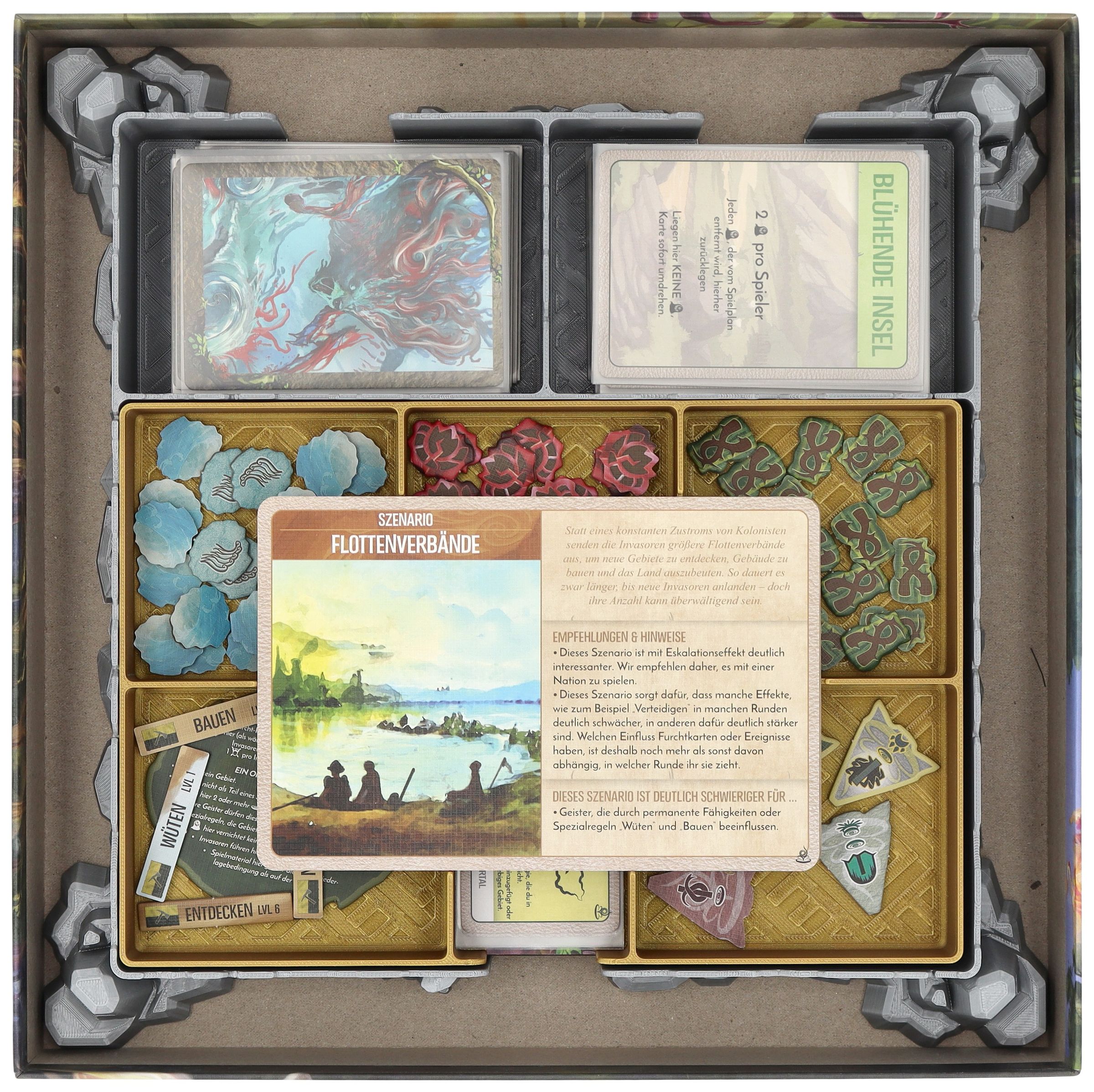 The “Nature Incarnate” expansion makes Spirit Island even more profound – new spirits, scenarios, and abilities bring a breath of fresh air to your defense of the island. To help you keep track of everything, our Feldherr Organizer Insert keeps your board game box tidy and structured – for better game flow and less searching.