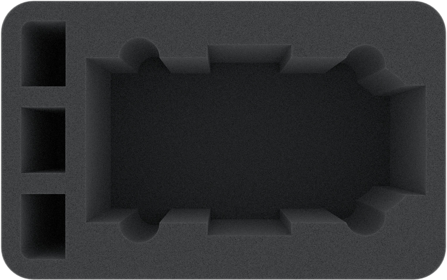 The large compartment is cut to fit a model of the A-A5 Speeder Truck including base. Thanks to the precise cut, the miniature remains securely in place during transport. The soft foam reliably protects the weapons and antennas from damage. Also the colors of the painted miniature are spared from scratches and abrasion.