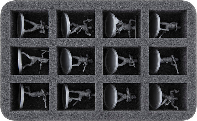 • 1 Half-Size foam tray with 12 compartments for models on 40 mm bases like Obi-Wan Kenobi, Ahsoka Tano, Jango Fett, and miniatures with similar dimensions (HS050A135)