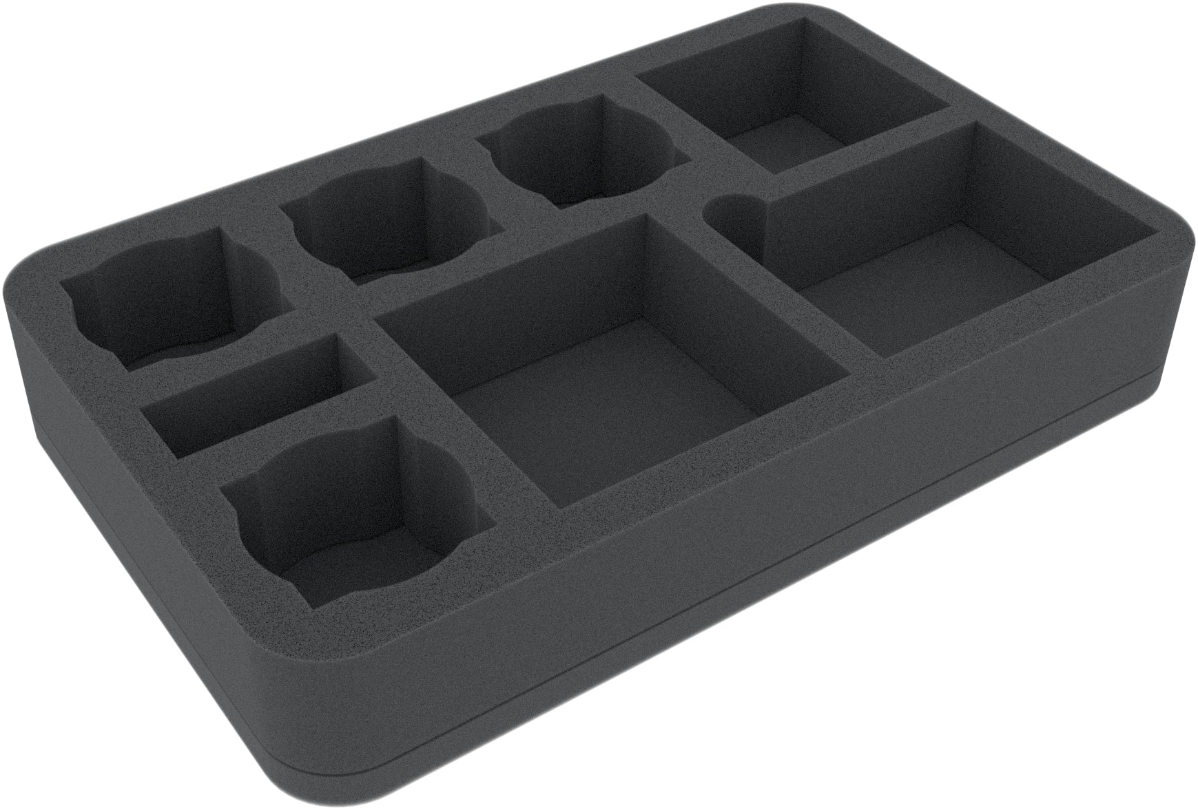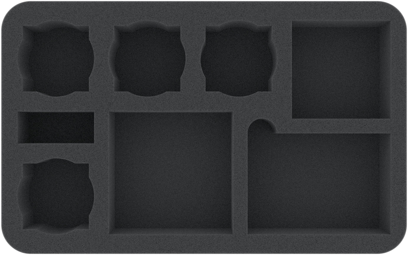 This foam tray has 8 compartments for the safe storage of the bases of the 2nd edition of Star Wars X-Wing. 1 compartment will hold a large base, 1 compartment is suitable for a medium base, 4 compartments can hold either small bases or dials.