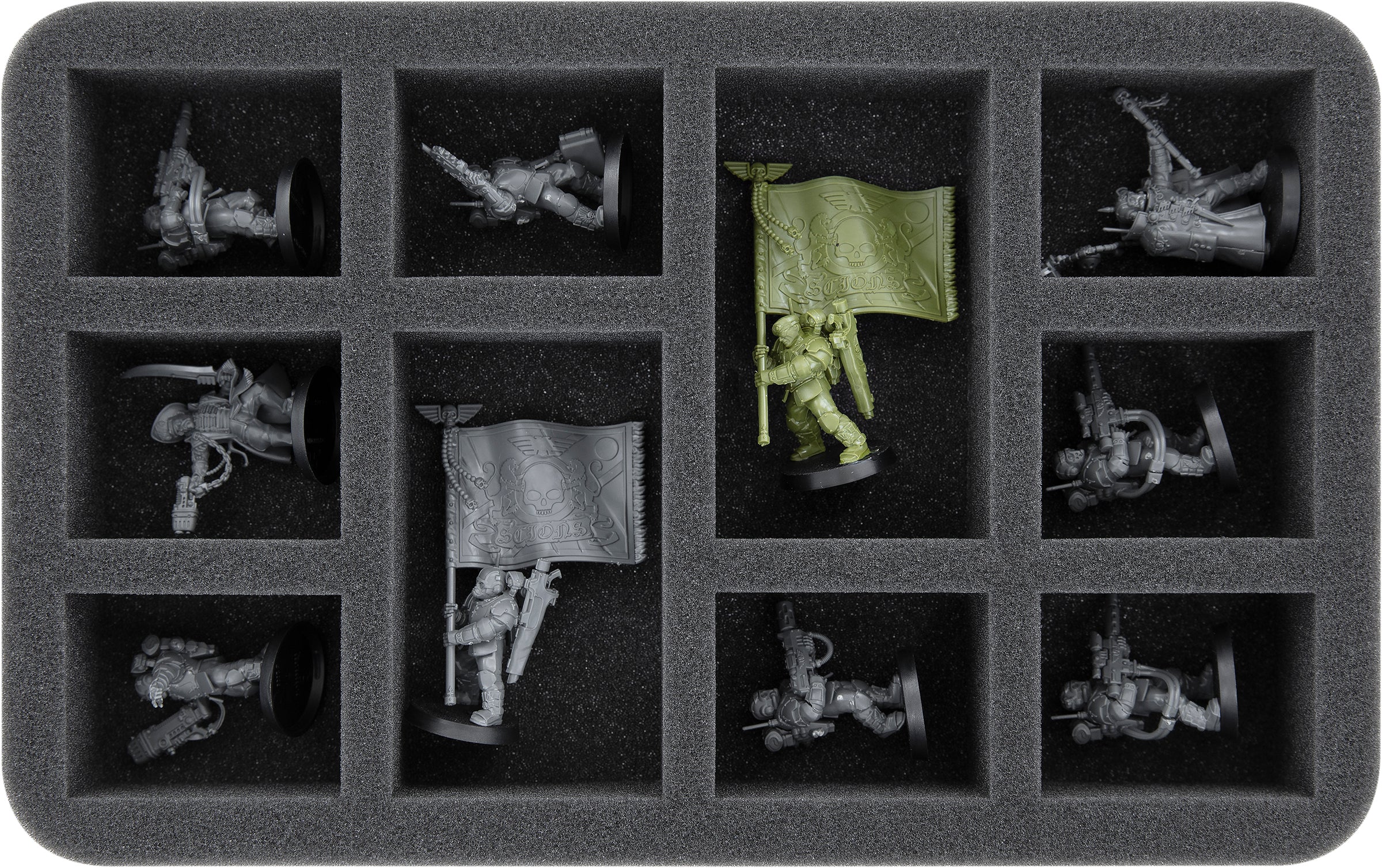 Custom-fit compartments made of soft foam reliably protect your miniatures from damage and also ensure that your painted units arrive safely at the tabletop without scratches.