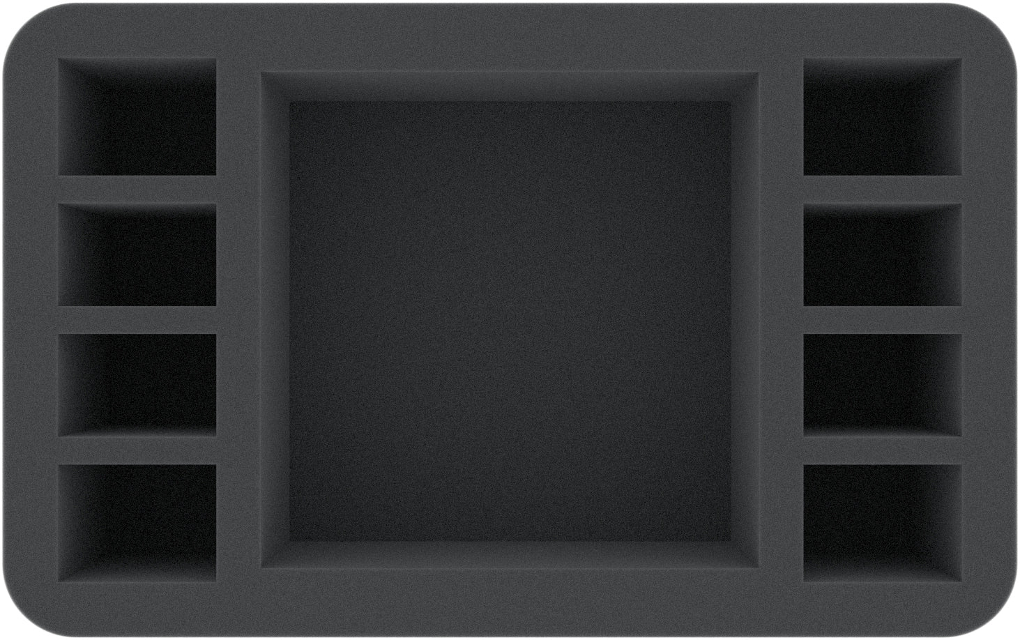On this Feldherr foam tray you have space for up to 9 miniatures of your Adeptus Custodes army. The large compartment of the insert is especially suitable for storing the Pallas Grav-attack + 8 compartments for models of the Sisters of Silence and miniatures with similar dimensions.
