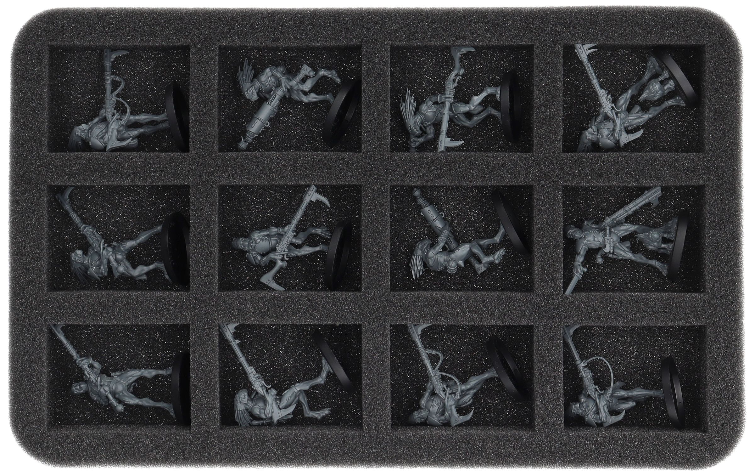 On this Feldherr foam tray you have space for up to 12 miniatures of your army. The insert is especially suitable for storing the Kroot, Hunter and similar sized models.