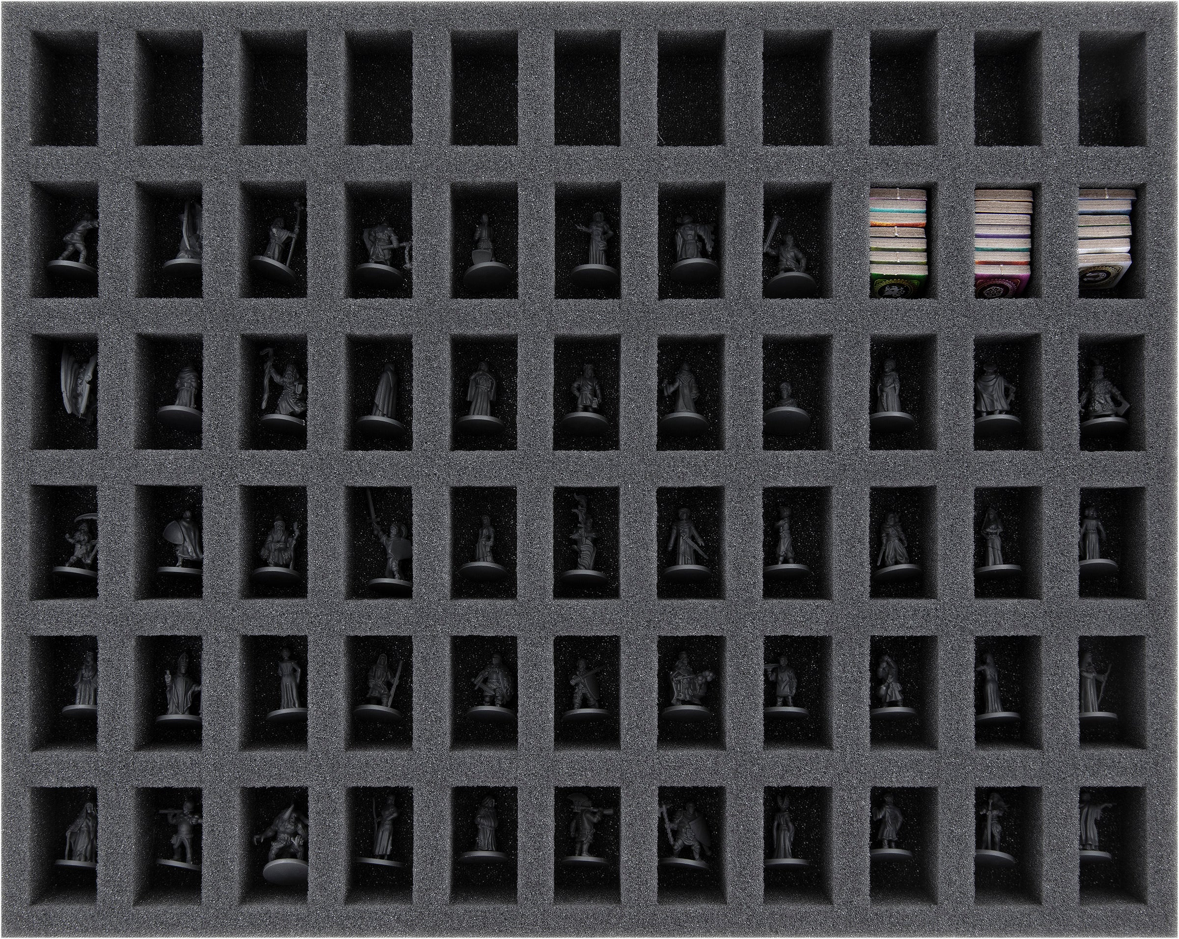 - 1 Full-Size foam tray with 66 compartments for small miniatures and game materials (FSMEOU035BO)
