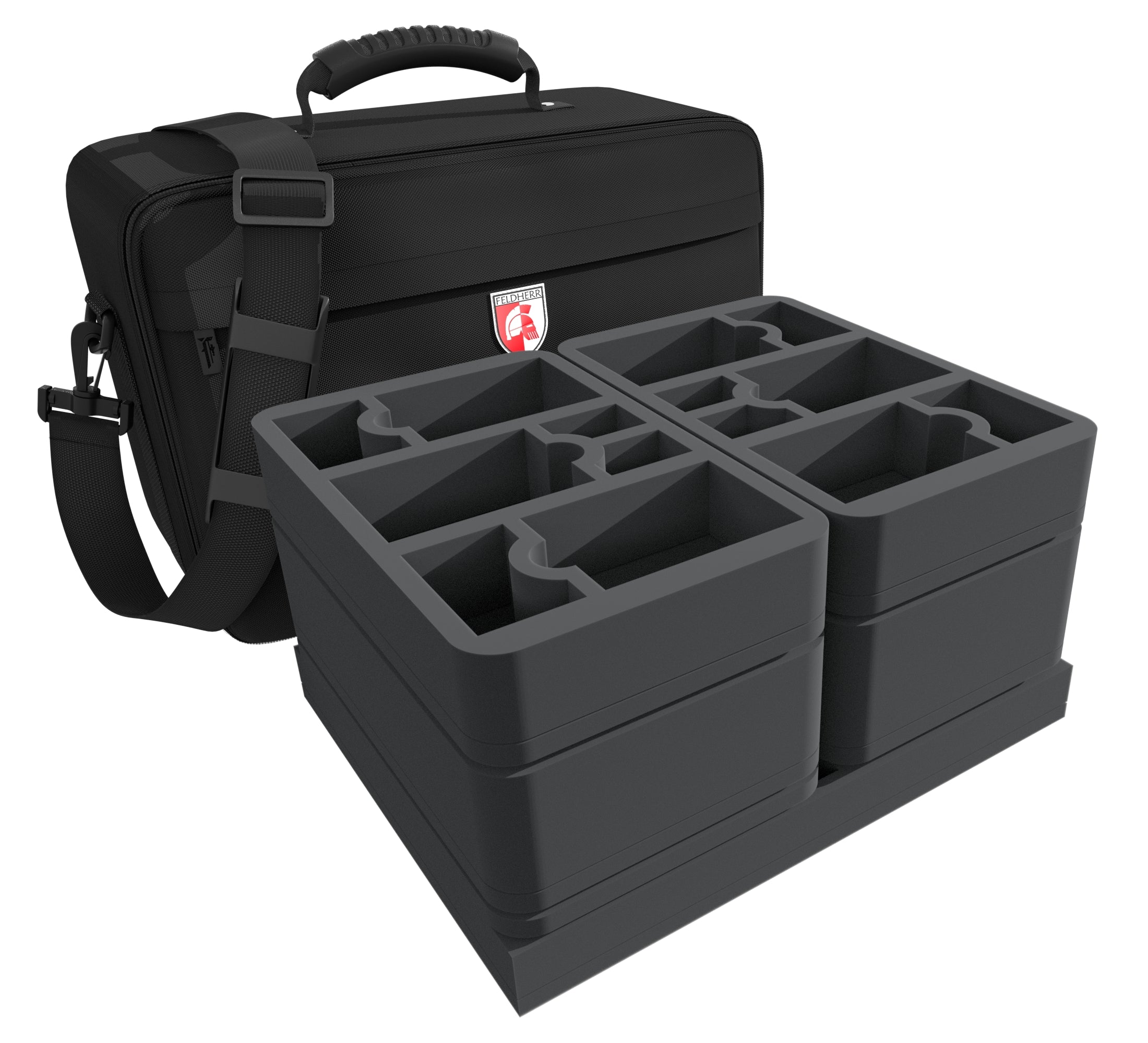 Spread across one Full-Size and four Half-Size inserts, this bag neatly and securely stores all the contents of the core game and expansions. Whether it's Abbadon, the Ifrit, or one of the numerous NPC, you can assign the right compartment to each figure. Precisely fitting compartments for each individual model ensure that the figures do not slide around or bump into each other during transport. This also spares the colors of the painted miniatures from abrasion and scratches.