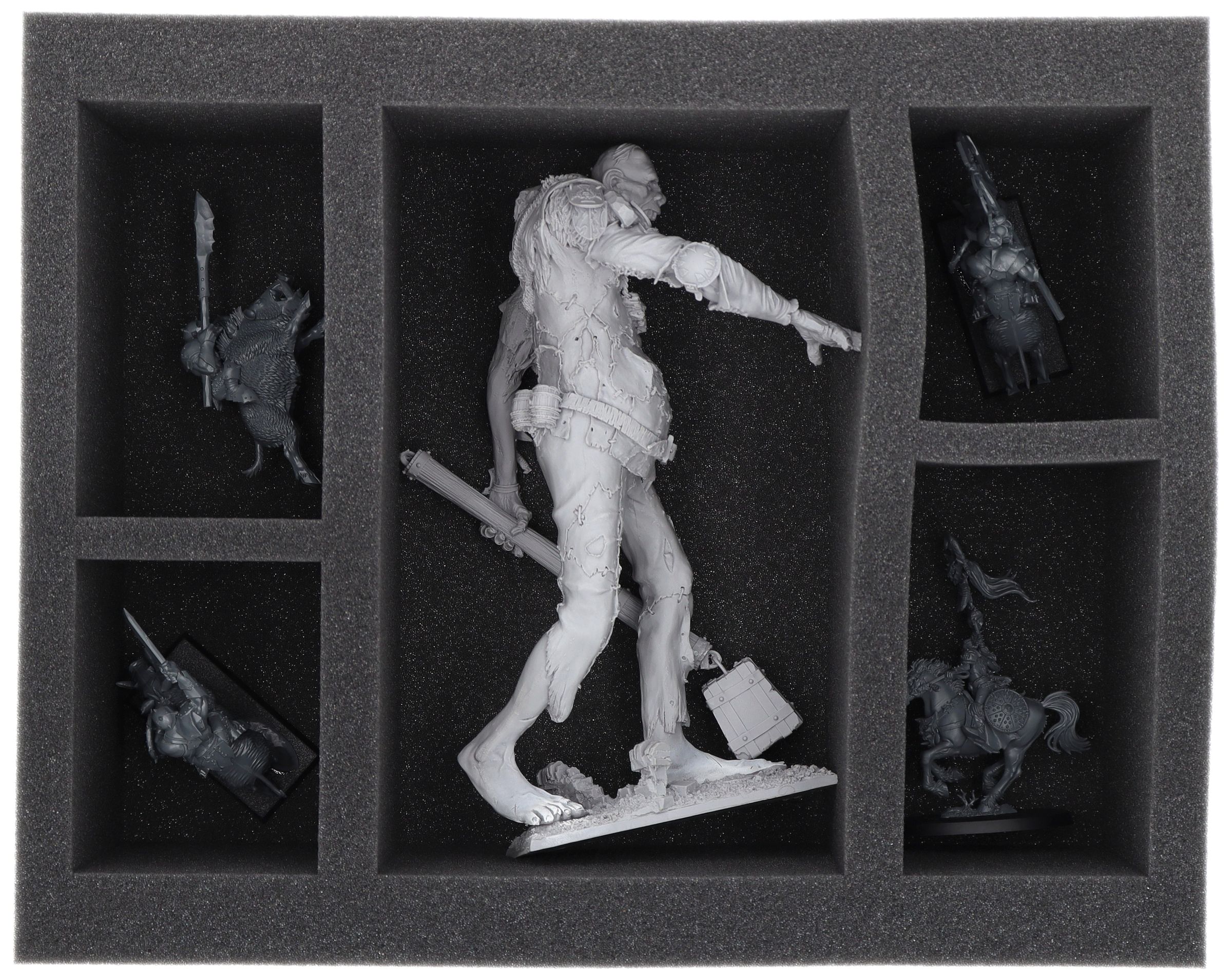 On this Feldherr foam tray you have space for up to 5 miniatures of your army. The insert is especially suitable for storing the Bonegrinder Giant and similar sized models.