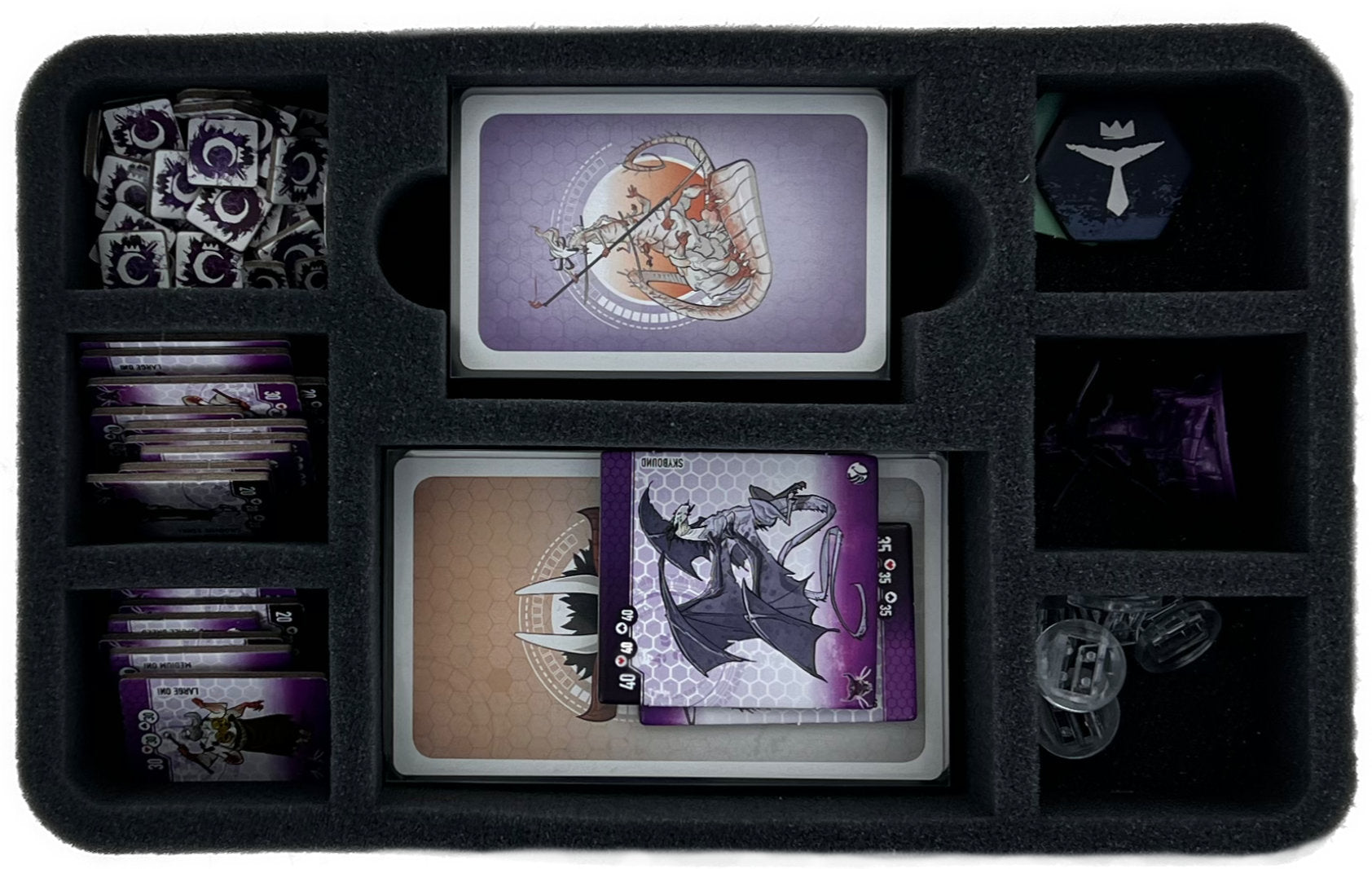 • 1 Half-Size foam tray for the Moon Princess miniature, regular-sized game cards, tokens and large-sized tarot cards. (HSMFEP050BO)