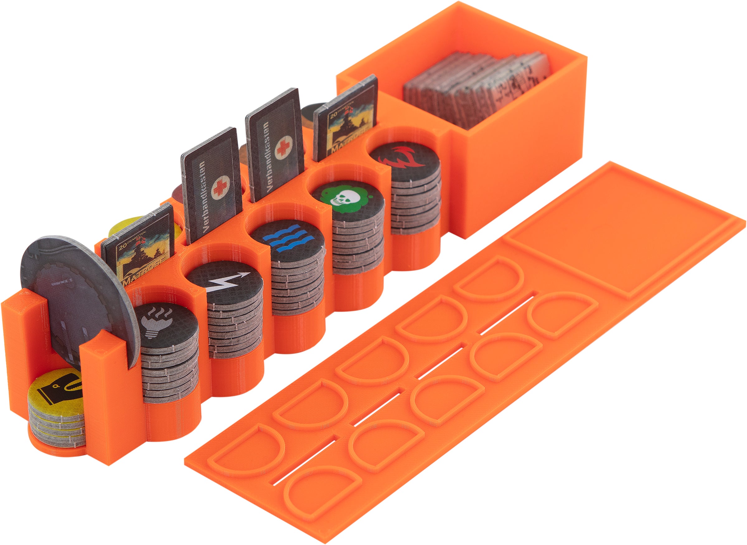 • The Interior Tokens, Supply Tokens and Environmental Conditions Upgrade Resin Packs from the Kickstarter All-In Pledge can also be stored here.