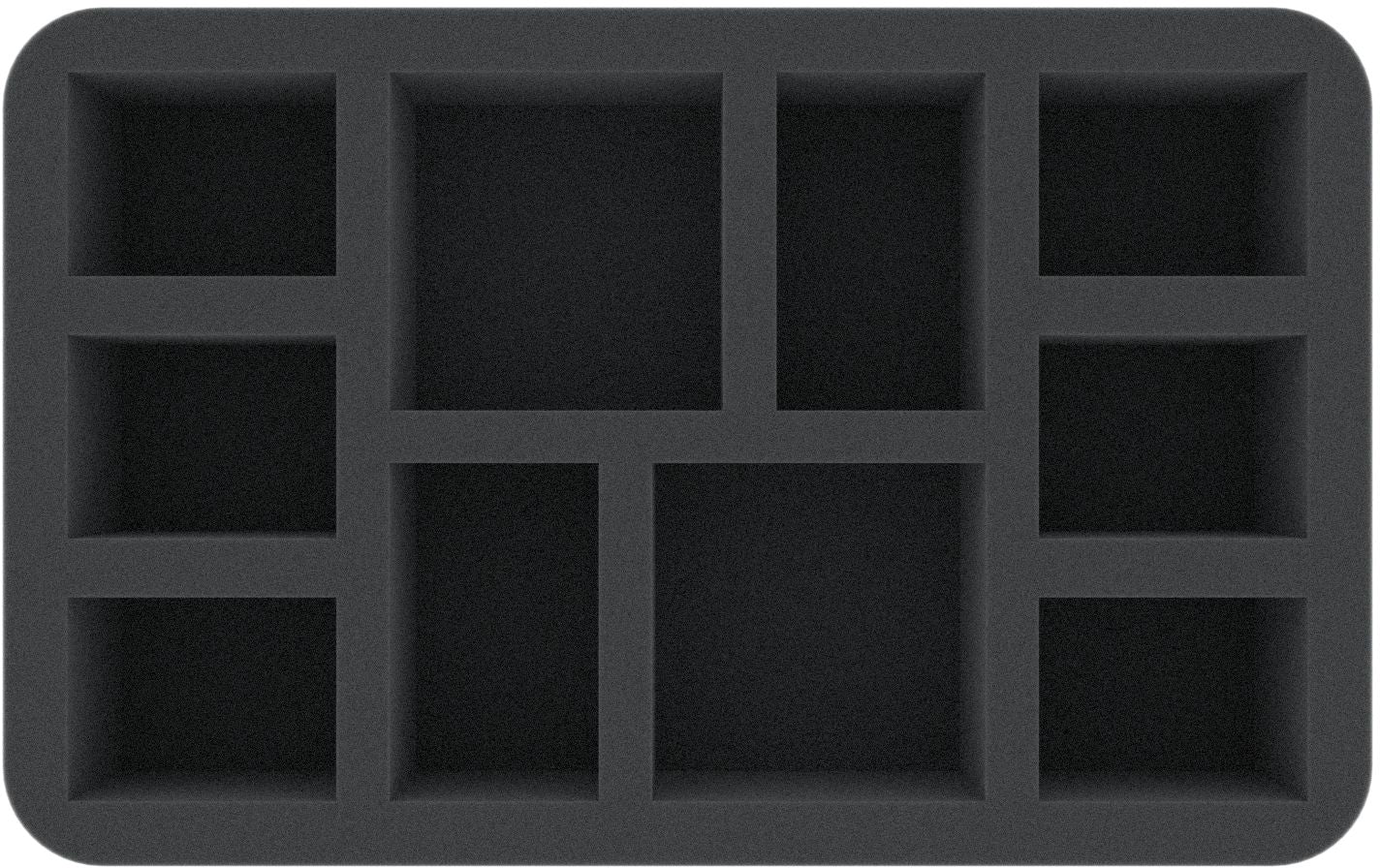 This Feldherr foam tray has 10 compartments for the safe and clear storage of Warcry miniatures. It is ideally suited for bulky warband miniatures like e.g. The Unmade. The fine-pored foam reliably protects your miniatures from damages – fragile parts stay intact, sensitive surfaces do not get scratched.