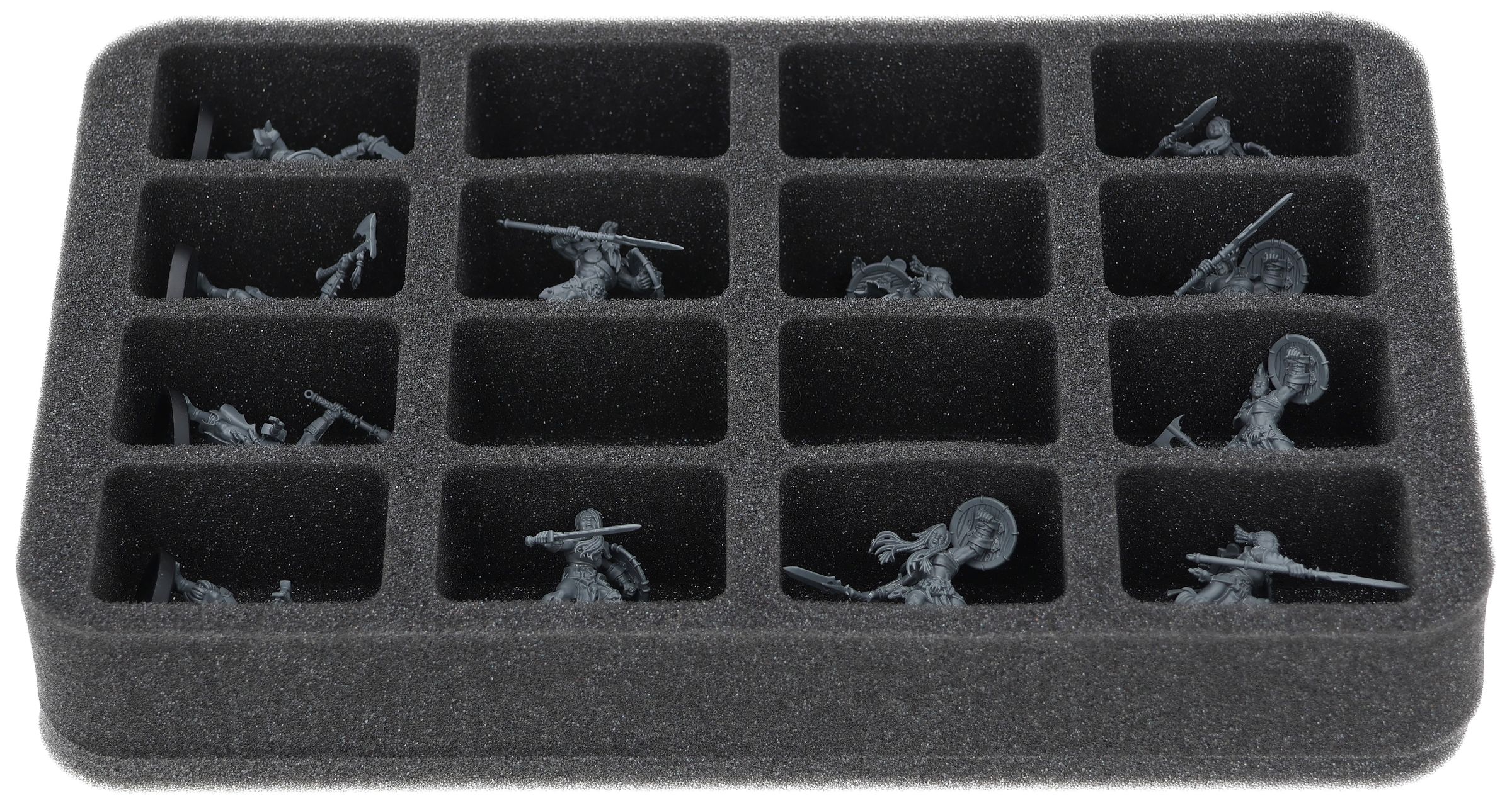 Up to 16 Chaos warriors find a safe place in this Half-Size foam tray. The insert is especially suitable for storing models like Darkoath Marauders or models with similar dimensions.