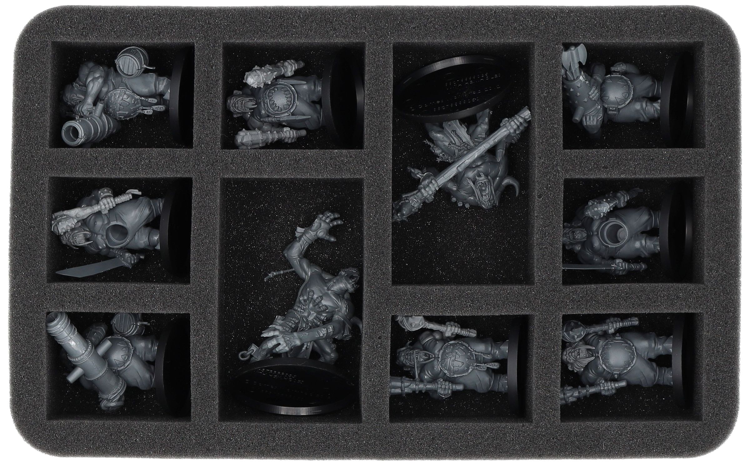 On this Feldherr foam tray you have space for up to 10 miniatures of your army. The insert is especially suitable for storing the Leadbelchers, Gluttons and similar sized models.