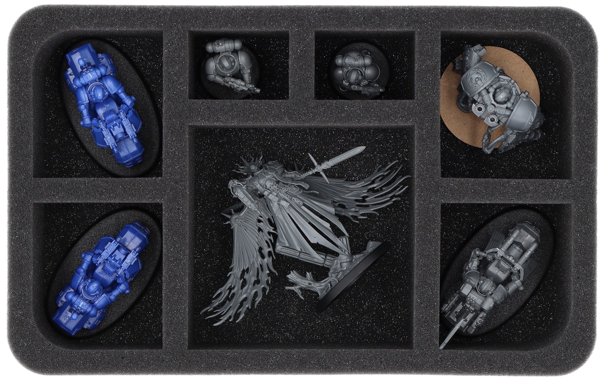 On this Feldherr foam tray you have space for up to 7 miniatures of your army. The insert is especially suitable for storing Tornus The Redeemed and similar sized models.