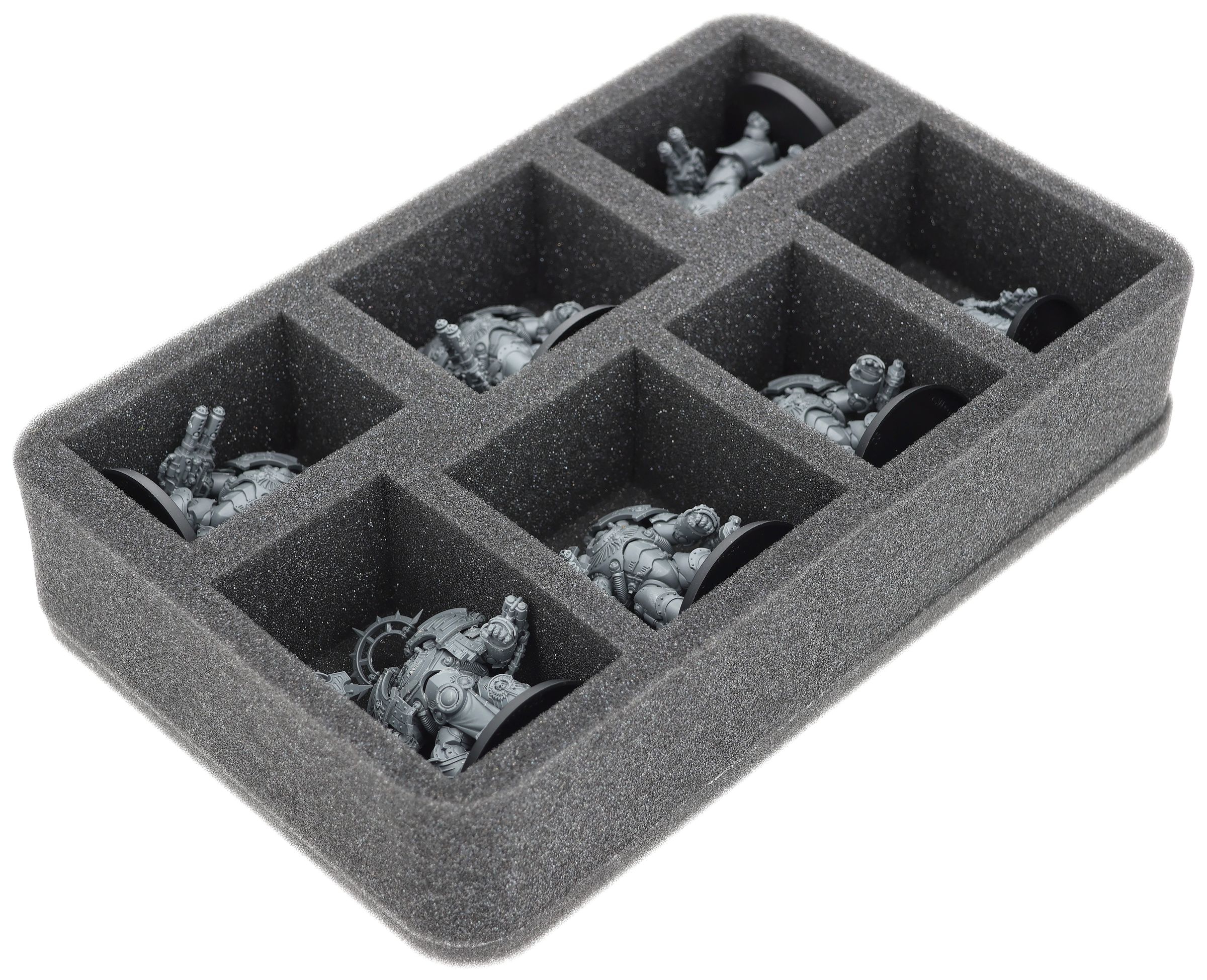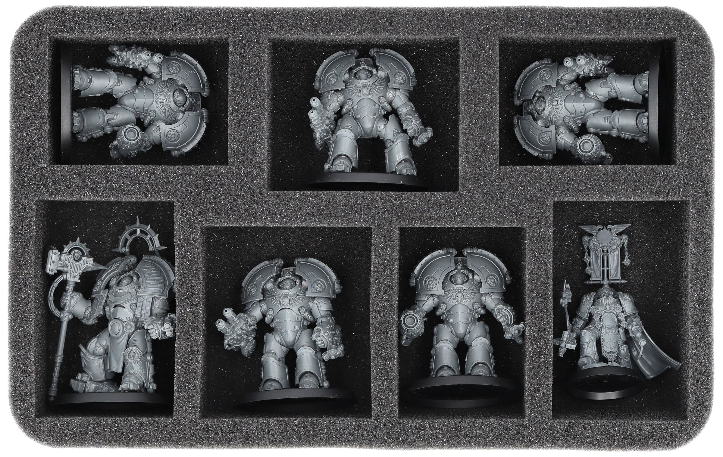 On this Feldherr foam tray you have space for up to 7 miniatures of your army. The insert is especially suitable for storing the Saturnine Terminator Squad and Saturnine Praetor and similar sized models.