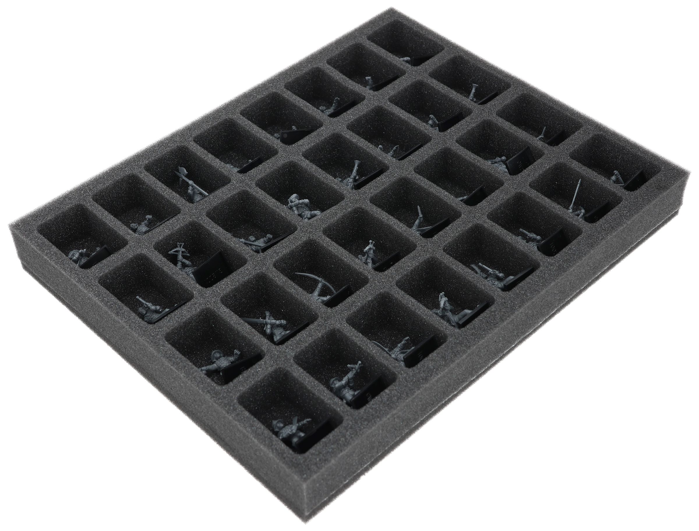 On this Feldherr foam tray you have space for up to 32 miniatures of your Empire of man collection. The insert is especially suitable for storing the Free Company Militia and similar sized models.