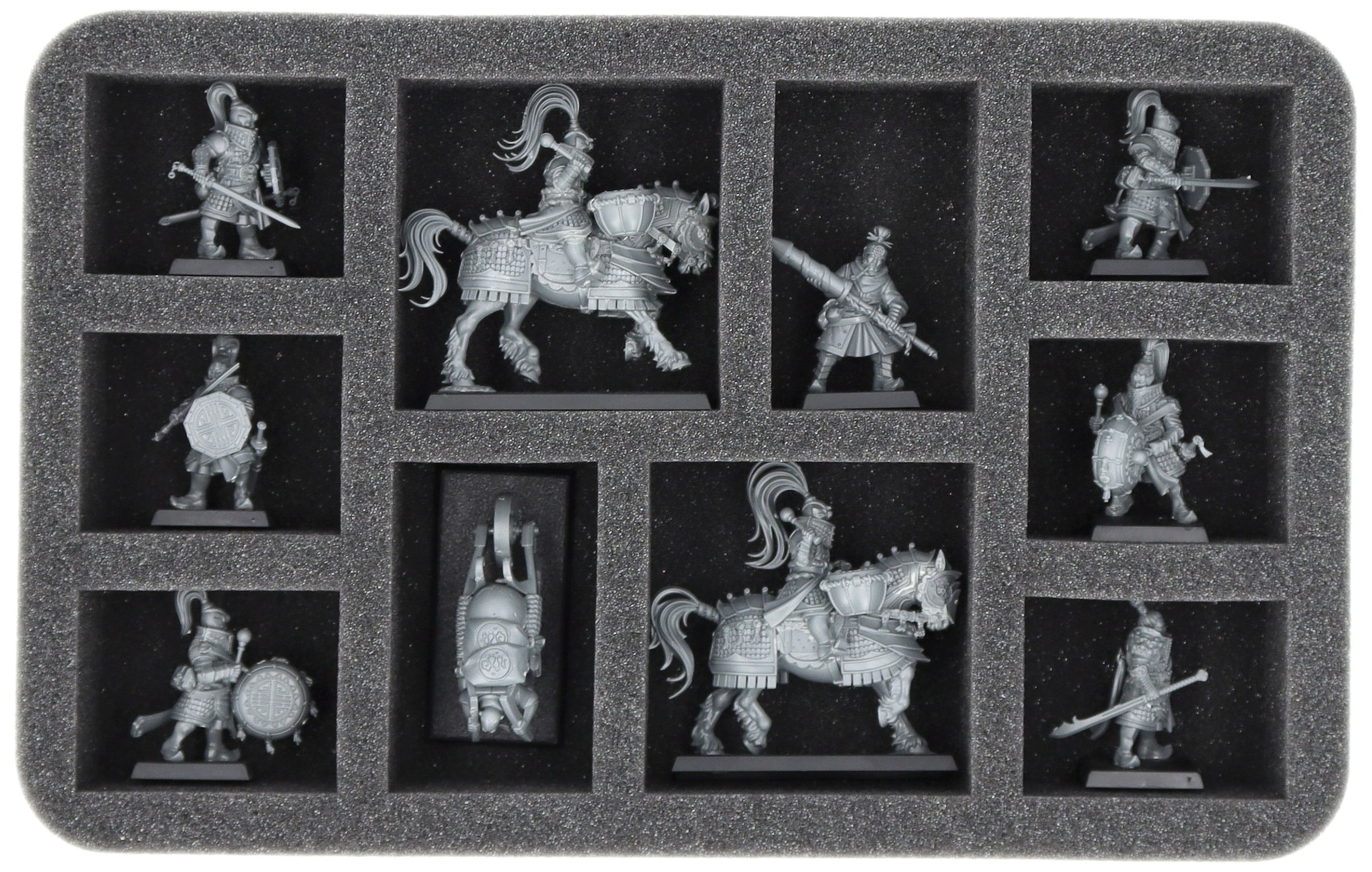 On this Feldherr foam tray you have space for up to 10 miniatures of your army. The insert is especially suitable for storing the Jade Warriors, Jade Lancers, Musician and similar sized models.