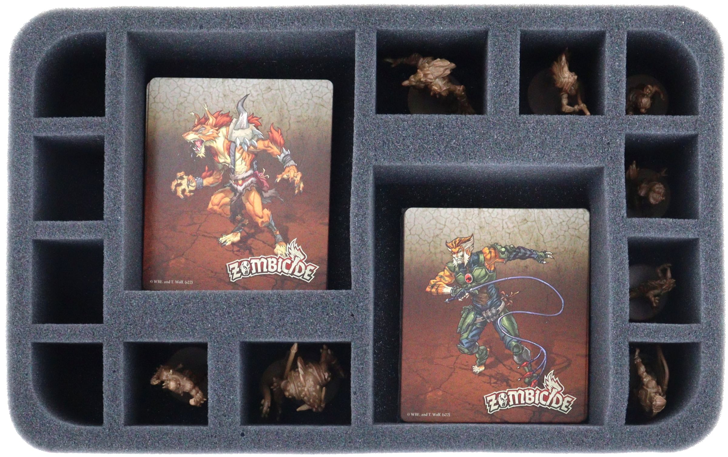 - 1 Half-Size foam tray with 14 compartments for miniatures like Panthro, Snarf, Slithe, Cheetara, Tygra, Jackalman, Wilykit, Wilykat + character sheets (HSMEDK060BO)