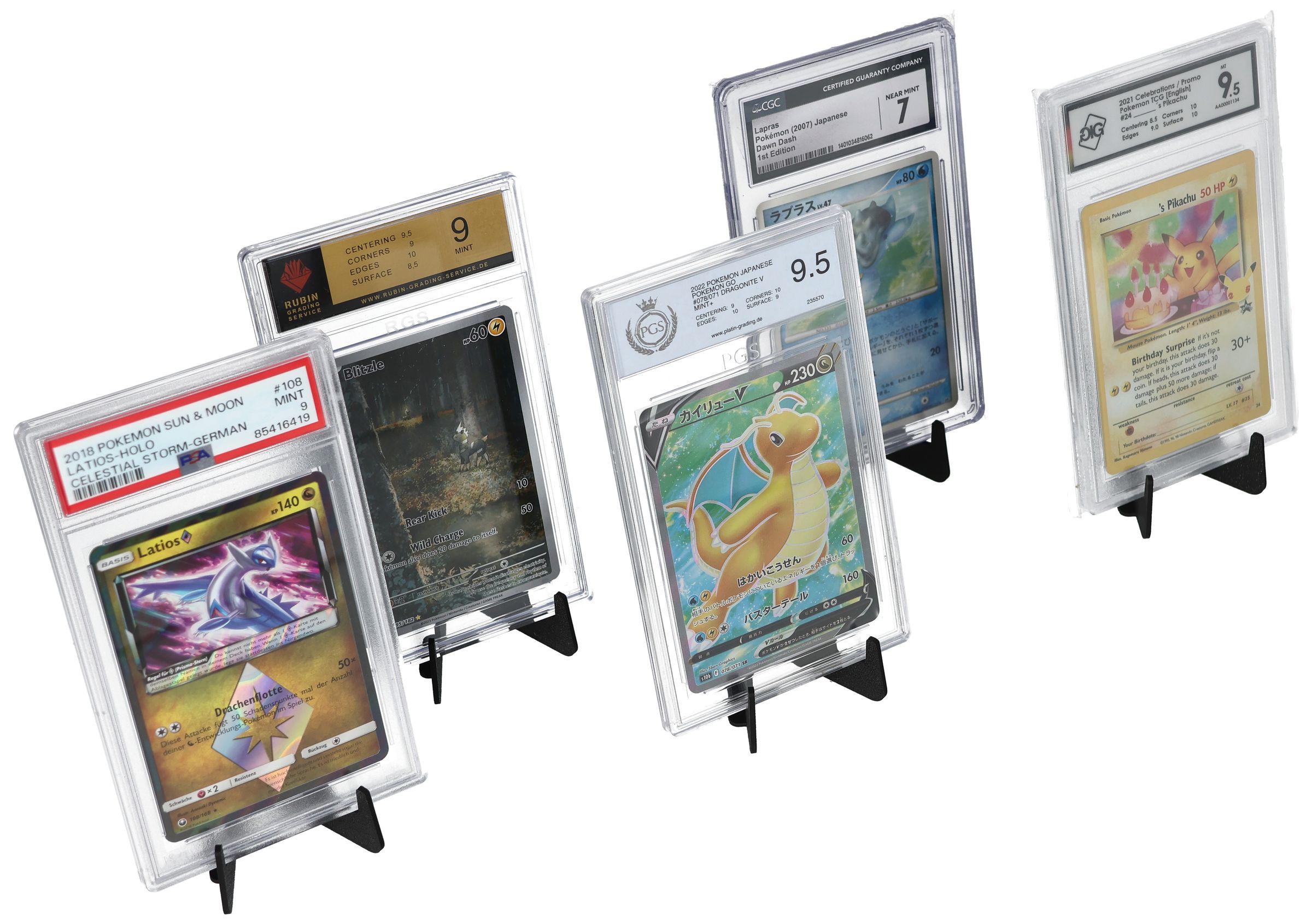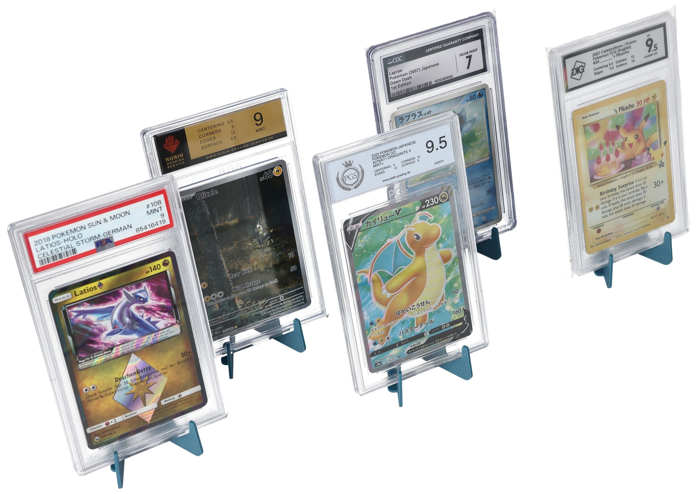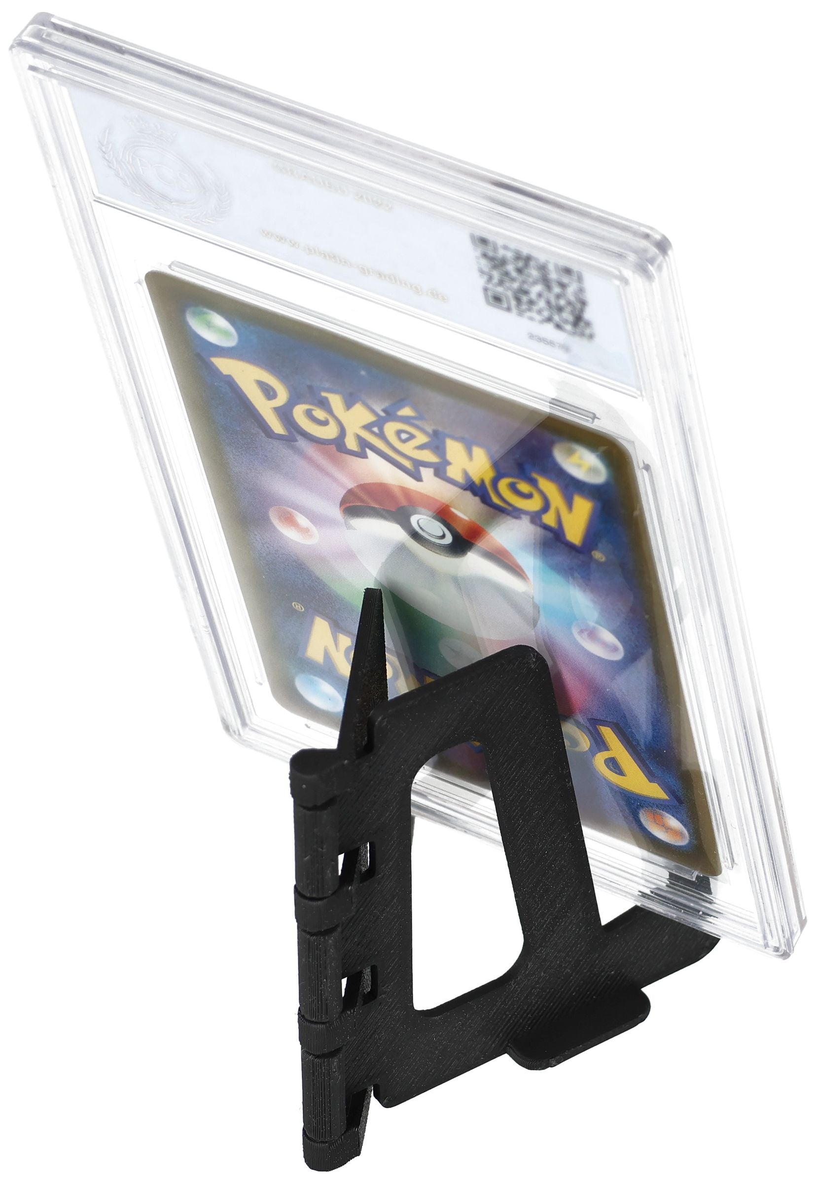 The card stand is compatible with PSA, BGS, CGC, Ultra PRO ONE-TOUCH displays, and other grading cases or top loaders up to 8 mm thickness. Its discreet design does not distract from the card and holds it at an optimal angle of approx. 10° - ideal for an upright, slightly tilted presentation.