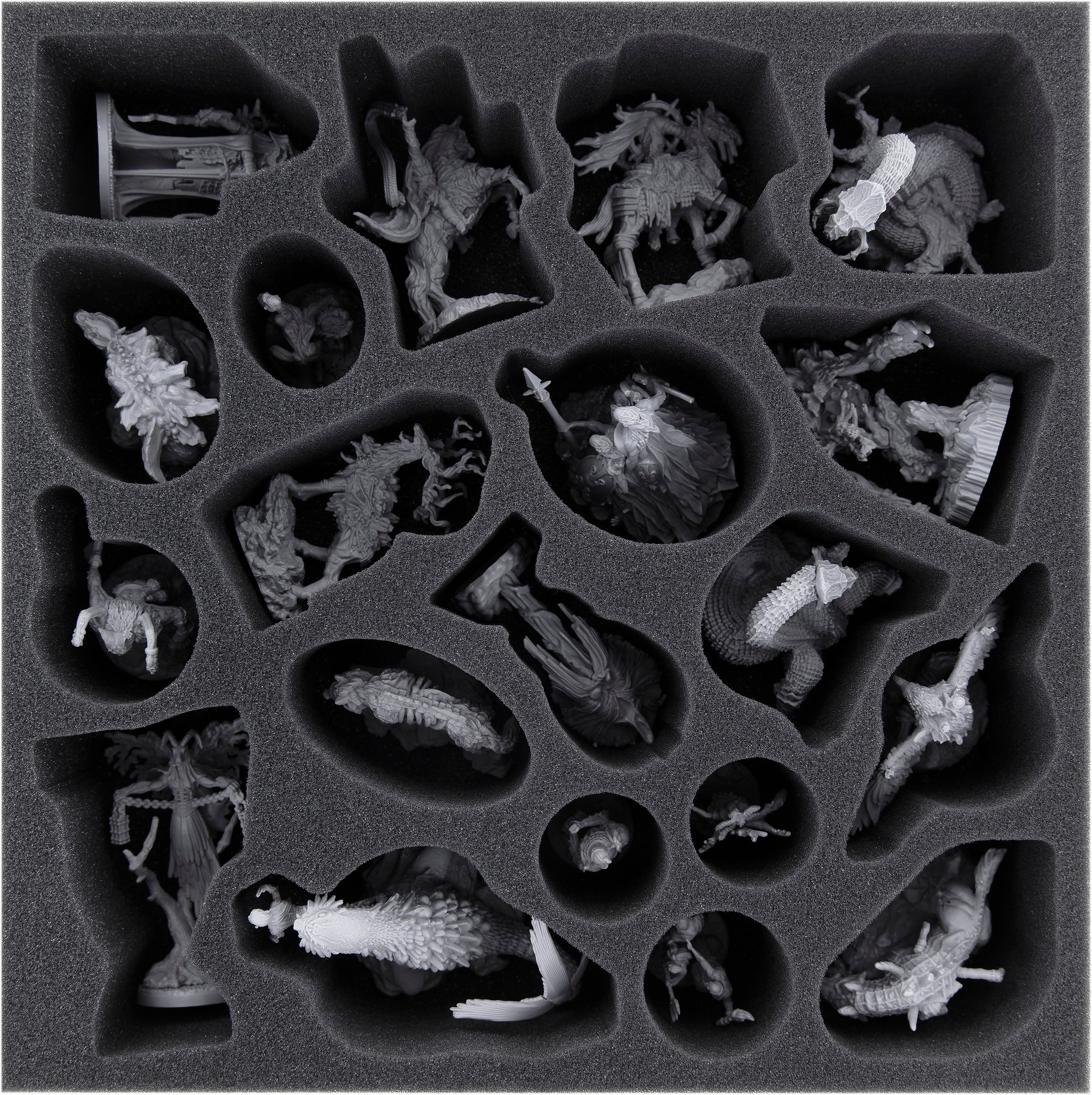 From the Angry Mob, to the Wolfwalker, to the Underbrush Wyrm - each figure gets its own compartment and is thus completely surrounded by foam. Dullahan keeps his skull and the Royal Elk his antlers. Thanks to the custom fit, nothing slips around and the figures stay where they are. If you paint your miniatures, you can be sure that the colors are still unharmed and free from scratches after transport.