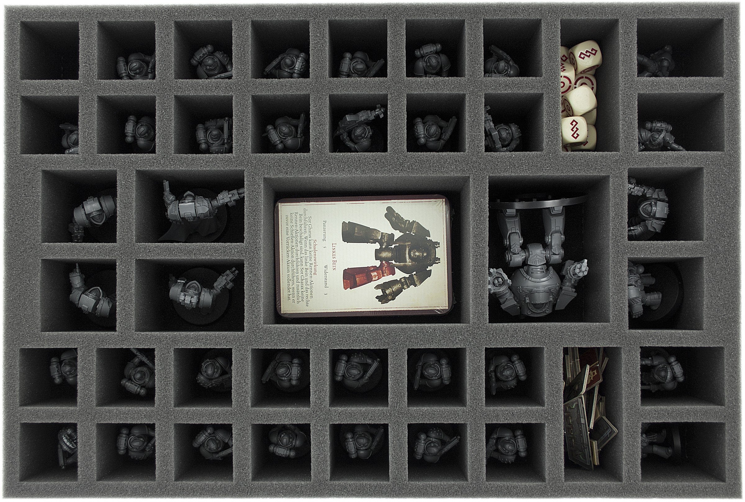Especially for Betrayal at Calth cut foam tray. The foam tray with 42 slots large enough for the miniatures from the game and fits perfectly into the board game box.