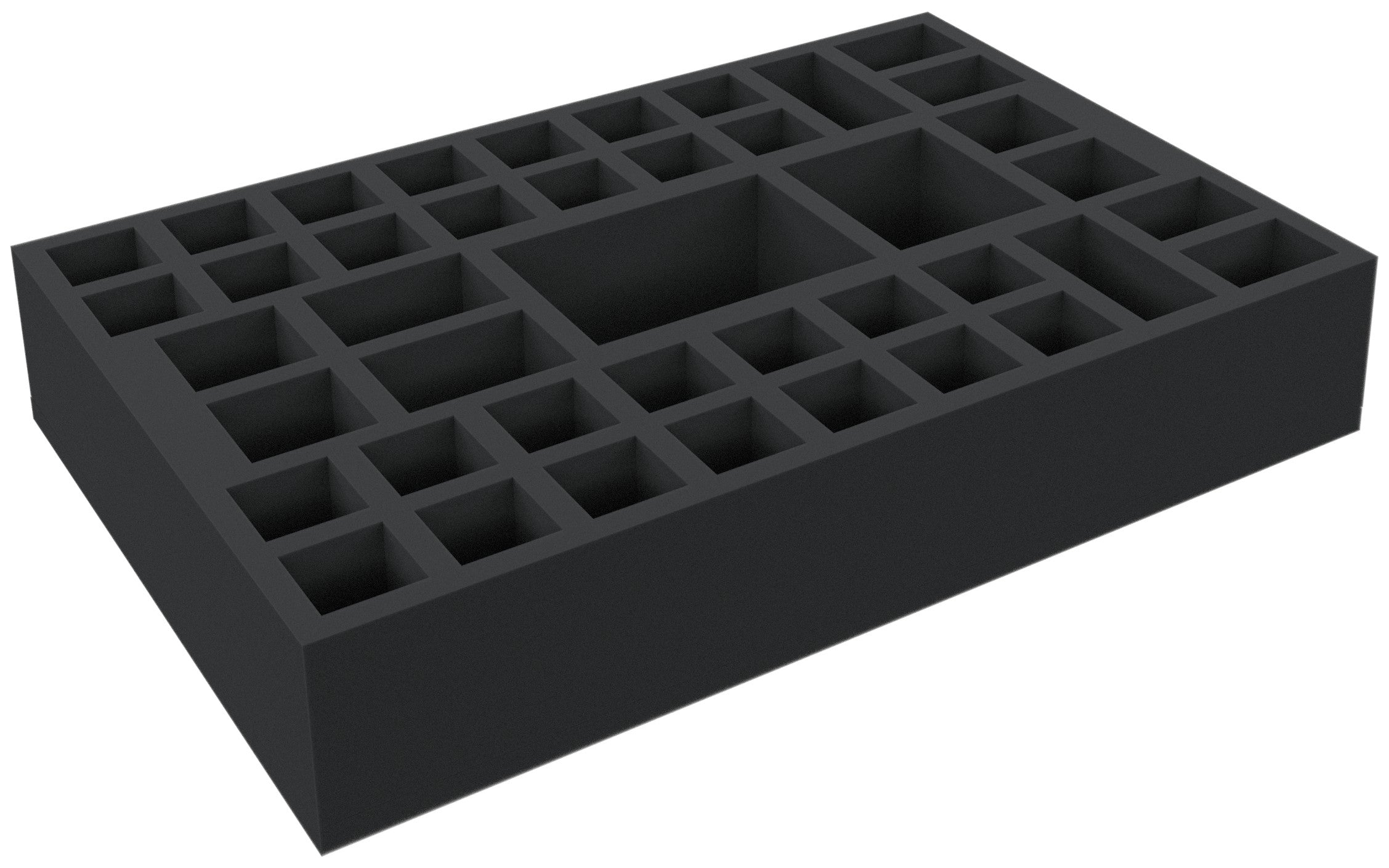 Dimension for this board game foam tray is 425 mm x 285 mm x 75 mm. The foam tray has capacity for: