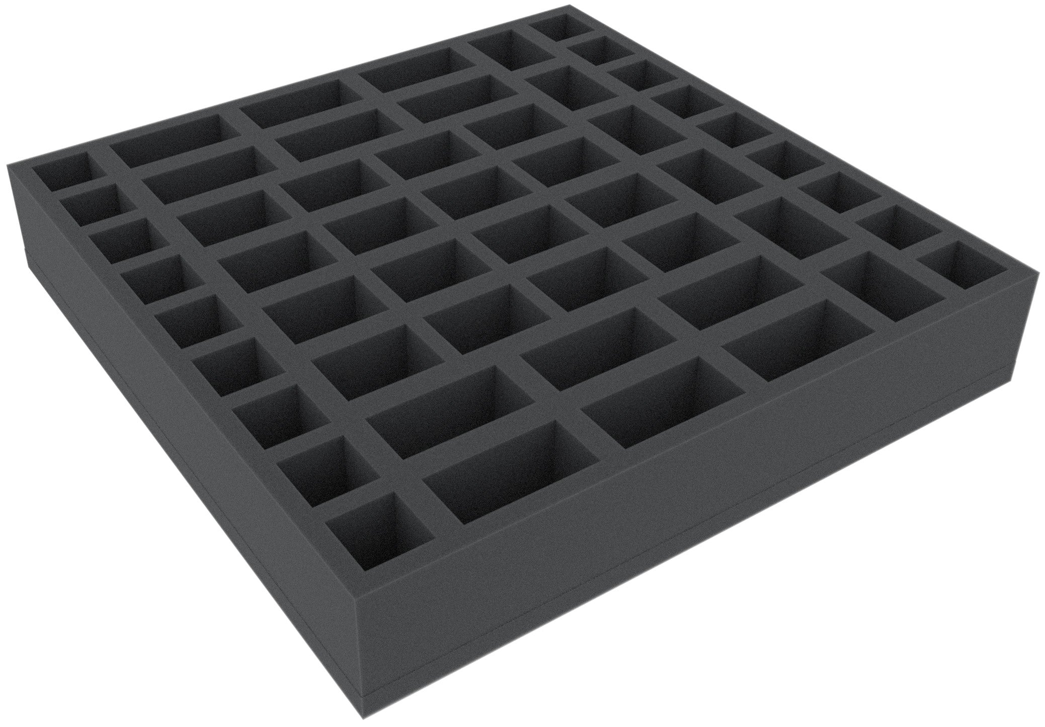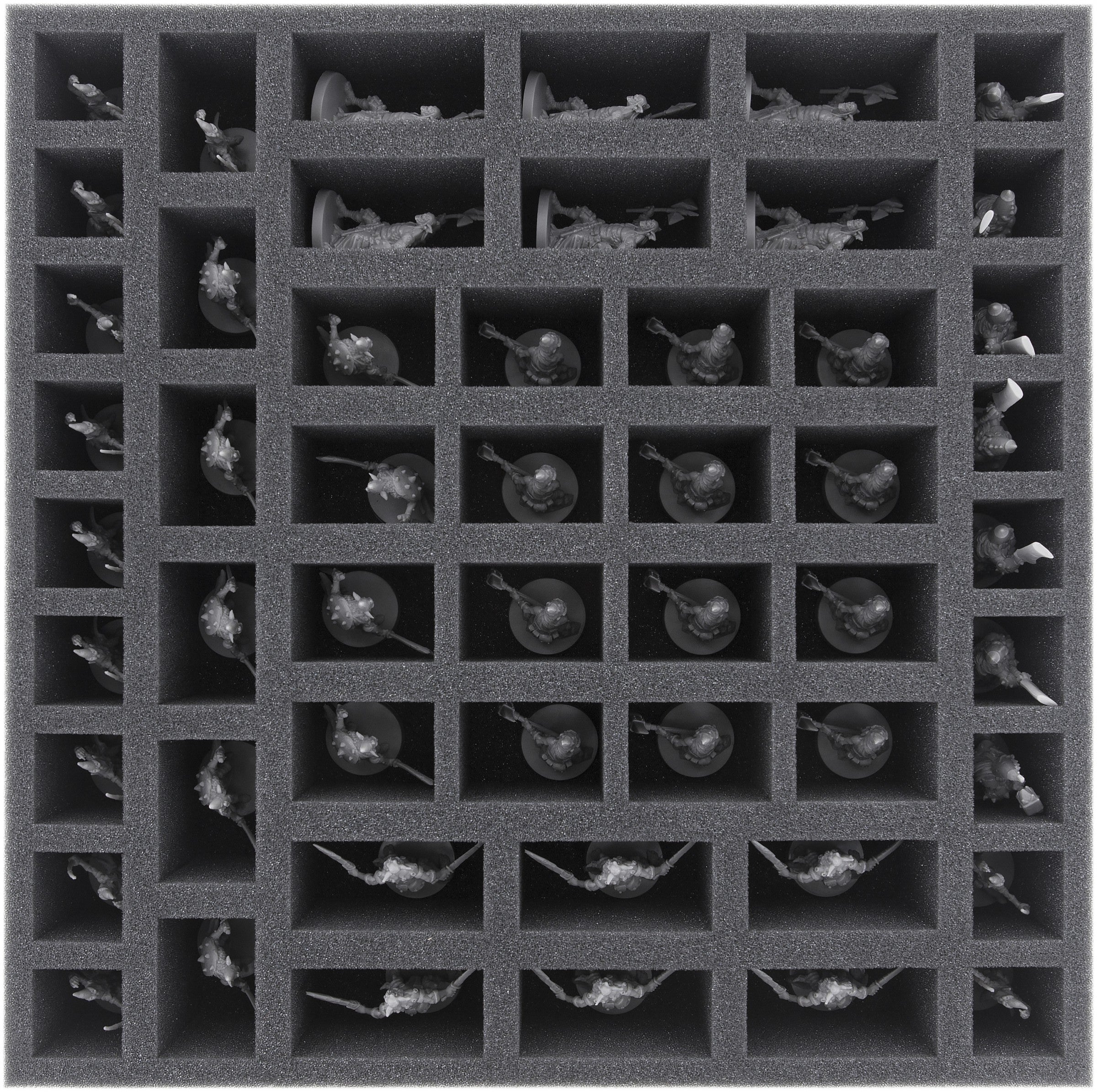 This foam tray is perfect for storage your Minions of the enemy units of your Massive Darkness boardgame. The 52 compartments allow you to protect und sort your Minions miniatures. In cause of the fitting, individual cut-outs your figures are save in the foam.