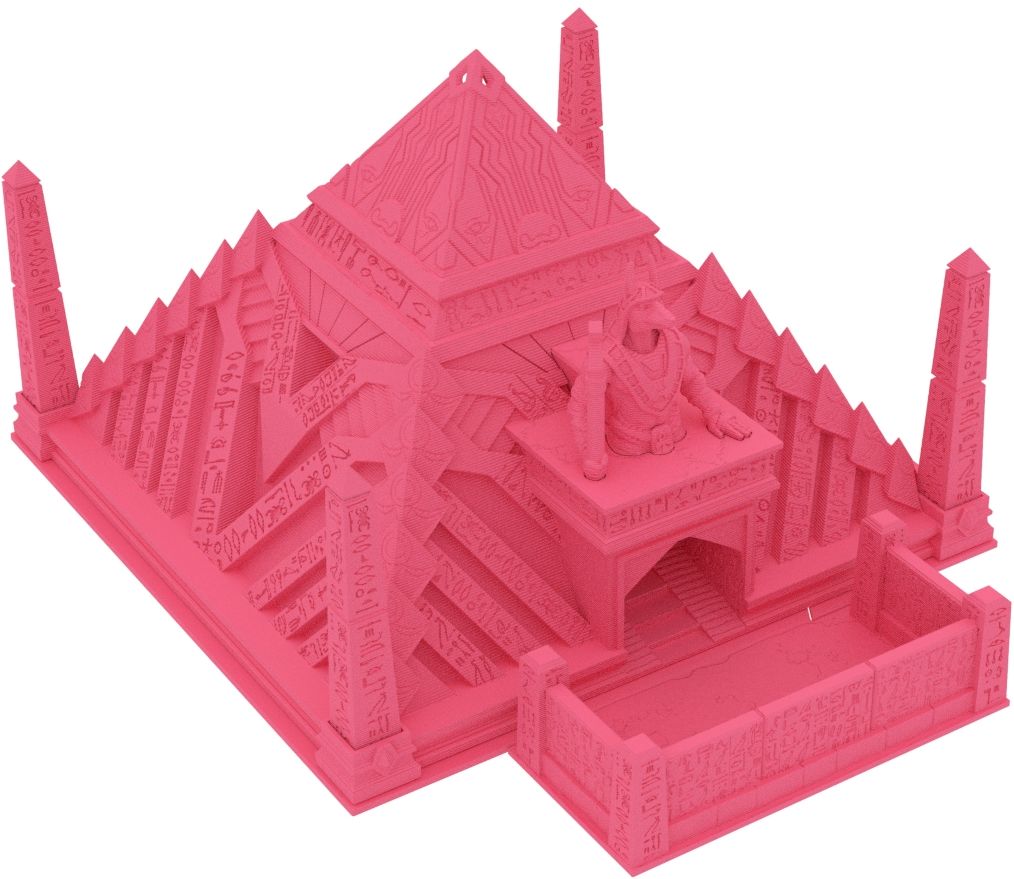 Crafted from environmentally-friendly PLA, this masterpiece is printed in Germany, guaranteeing both quality and sustainability. Whether you are playing Warhammer, Dungeons and Dragons (DnD), or any other board game, The Grand Pyramid Dice Tower is a must-have for seamless and mythic rolls. Its detailed pyramid structure adds an element of intrigue and wonder, drawing fellow gamers to its majesty.