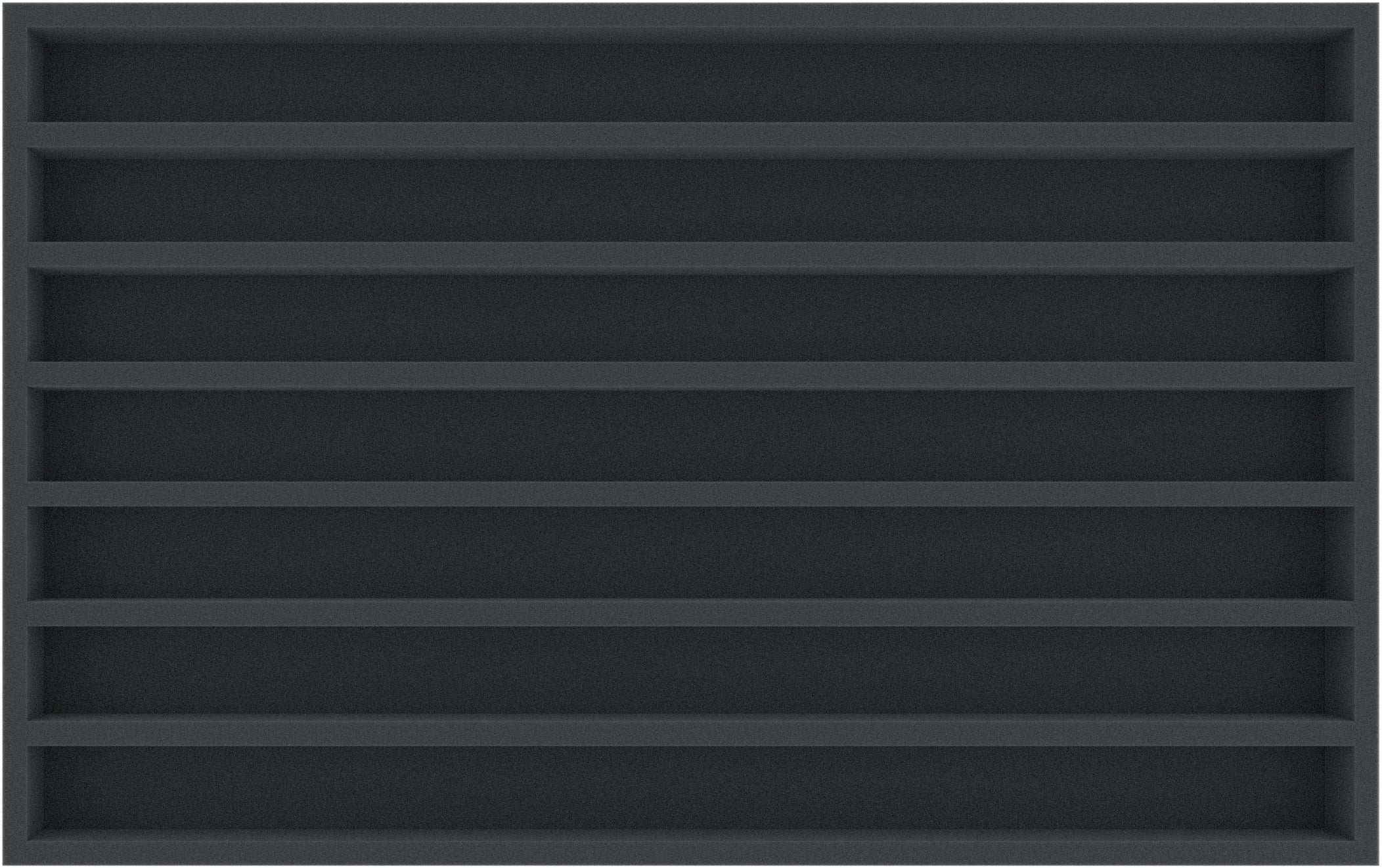 This 40 mm mm high foam tray is divided into 7 compartments. It is particularly suitable for the safe storage of tabletop and board game miniatures, as well as other fragile models and small parts.