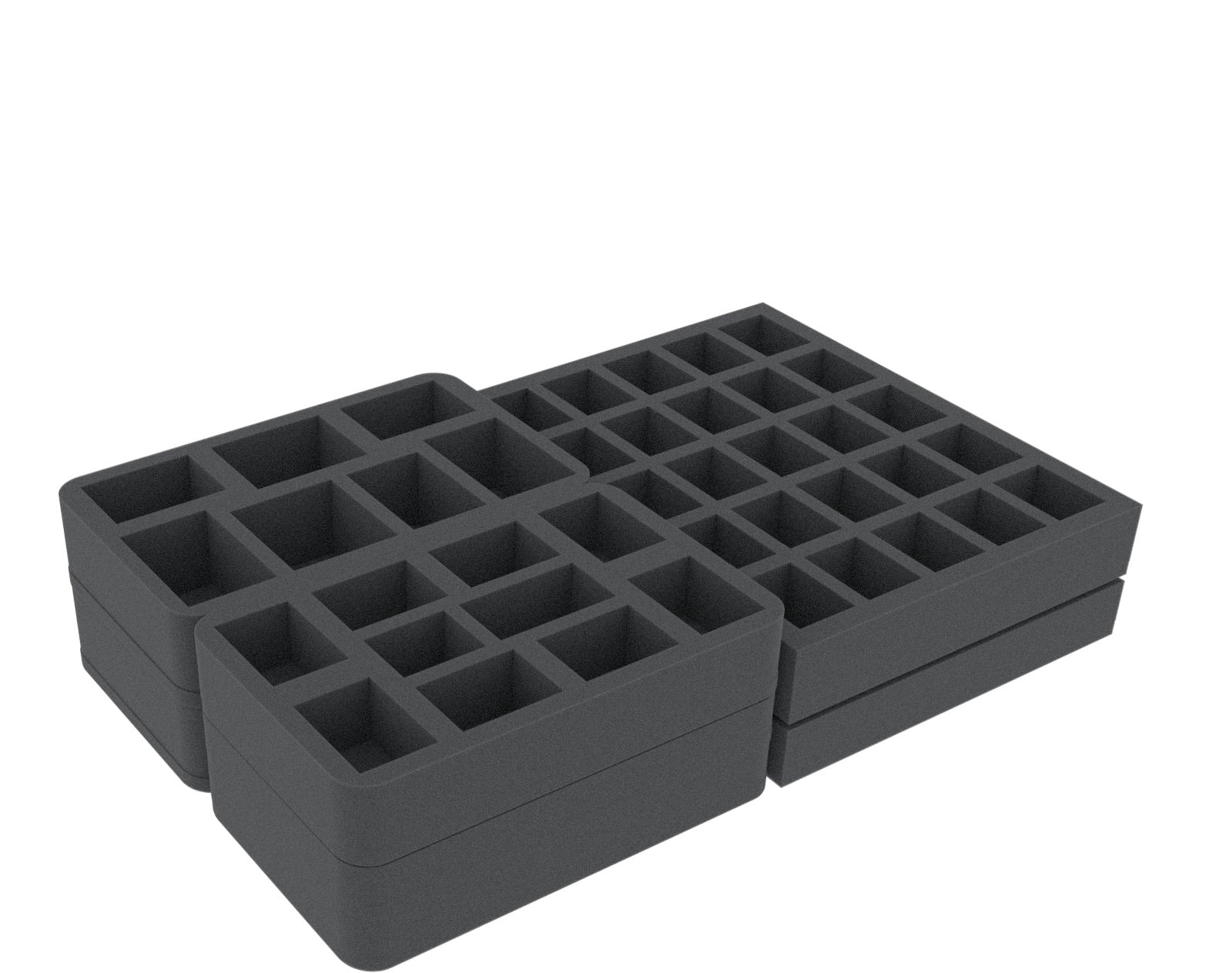 - Includes 1 Full-Size foam insert with 16 compartments for miniatures (FSMEFP040BO), and 2 Full-Size inserts with 25 compartments each (FSLQ050BO and FSLQ040BO) for smaller figures.