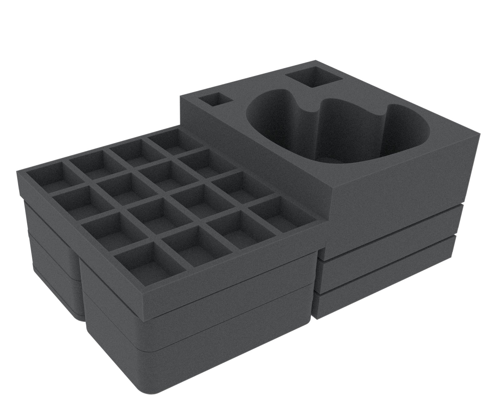 To complete the protection, the set comes with two Full-Size foam lids. Once placed on top of the stacked inserts inside the Eurobox case, these lids ensure that the miniatures are shielded from above and that there are no open sides within the storage system. Combined with the rigid Eurobox case, this creates a comprehensive solution for safely storing and transporting your Kingdom Death: Monster 1.6 and 1.5 Wave 1 + 2 miniatures.