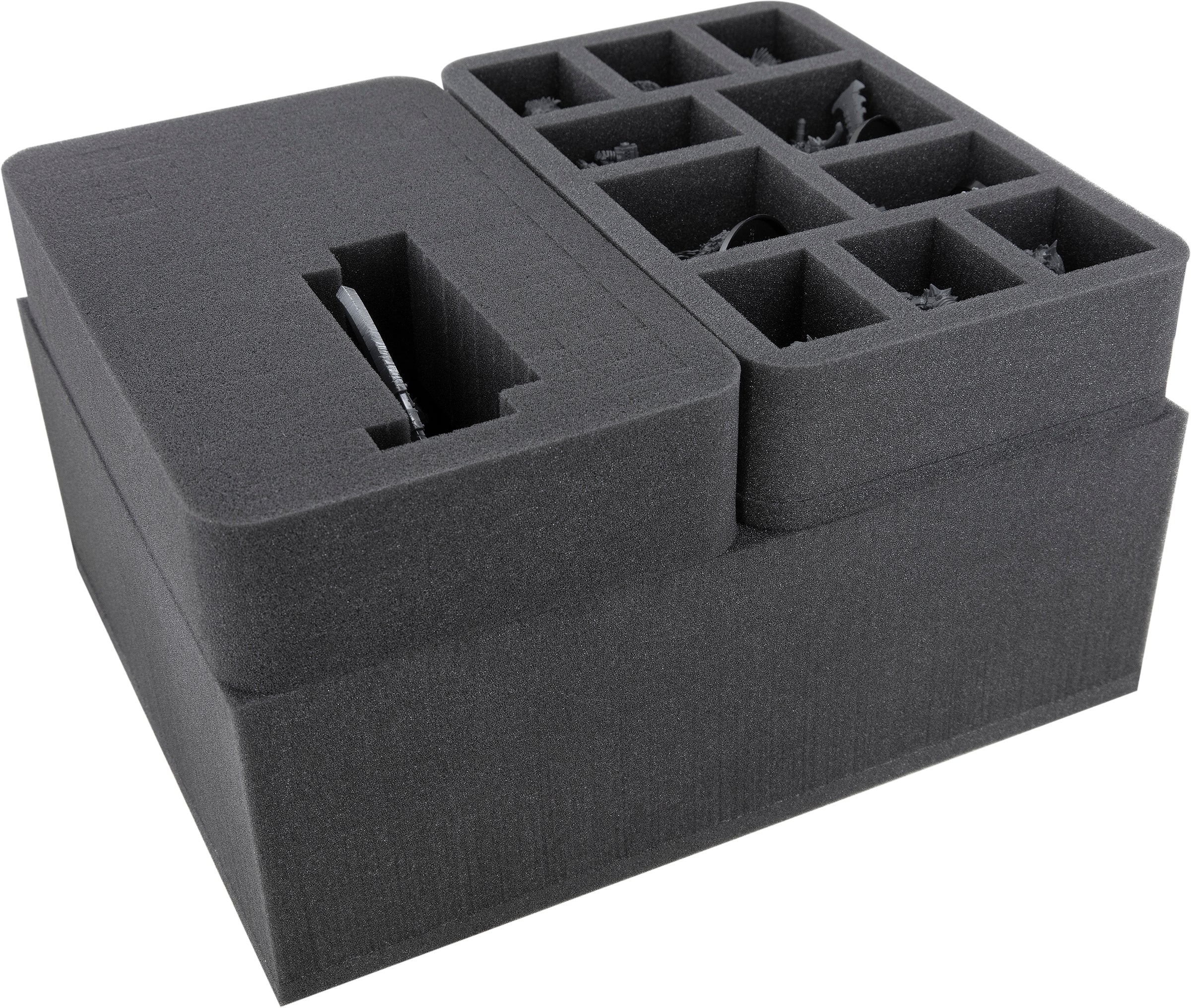 The other side of the Full-Size insert is covered with a Half-Size foam tray with 10 compartments. Here you can accommodate more Ork models. The two large compartments can fit figures as large as a Zodgrod Wortsnagga or a Beastboss. The middle compartments offer space for models like Meganobz or Ork Stormboyz. The small compartments can accommodate Ork Boys or Ork Beast Snagga Boyz.