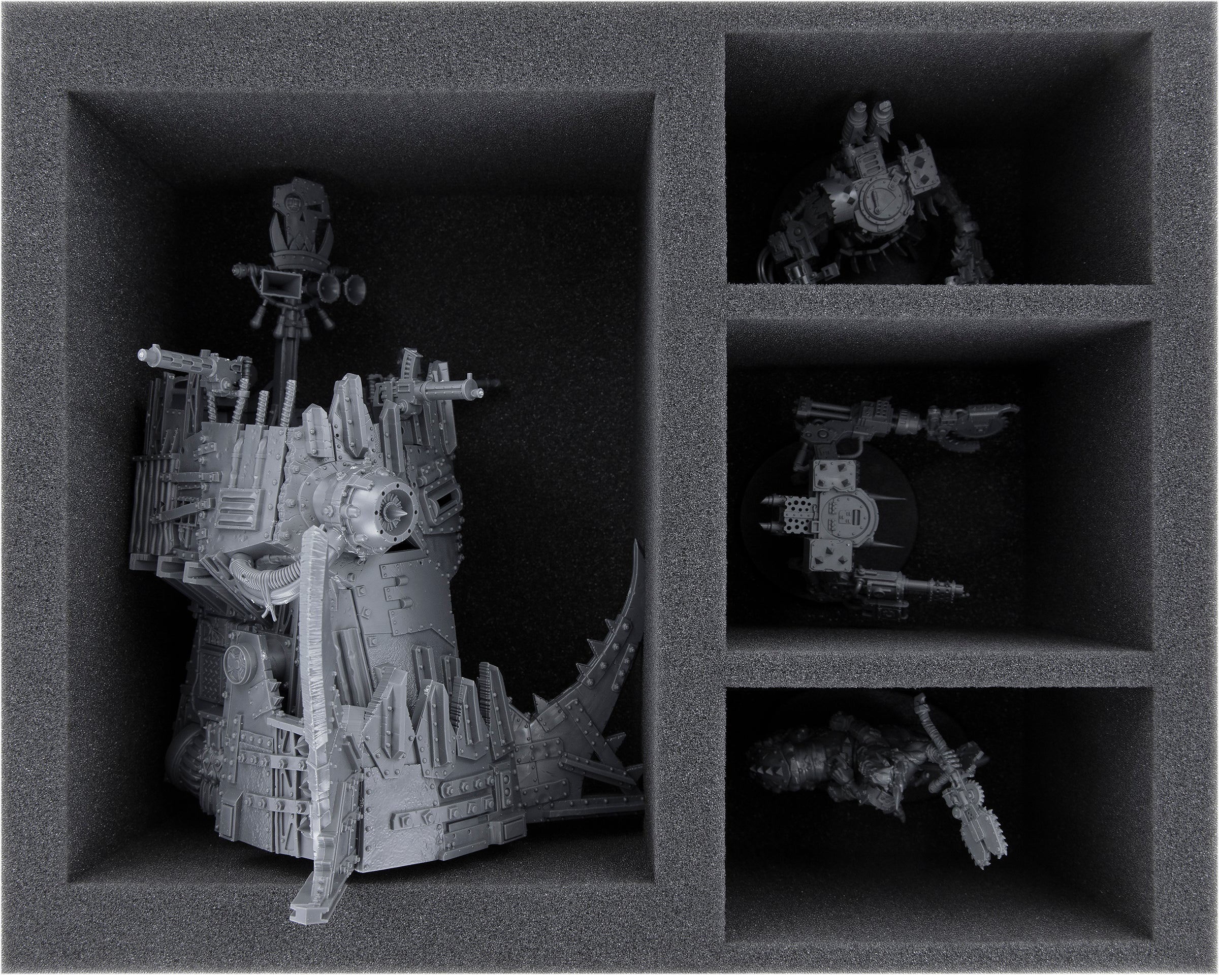 - 1 Full-Size foam tray with 4 compartments for 1 Big'ed Bossbunka and other models like Squighog Boyz or Killa Kans (FSMFCZ125BO)