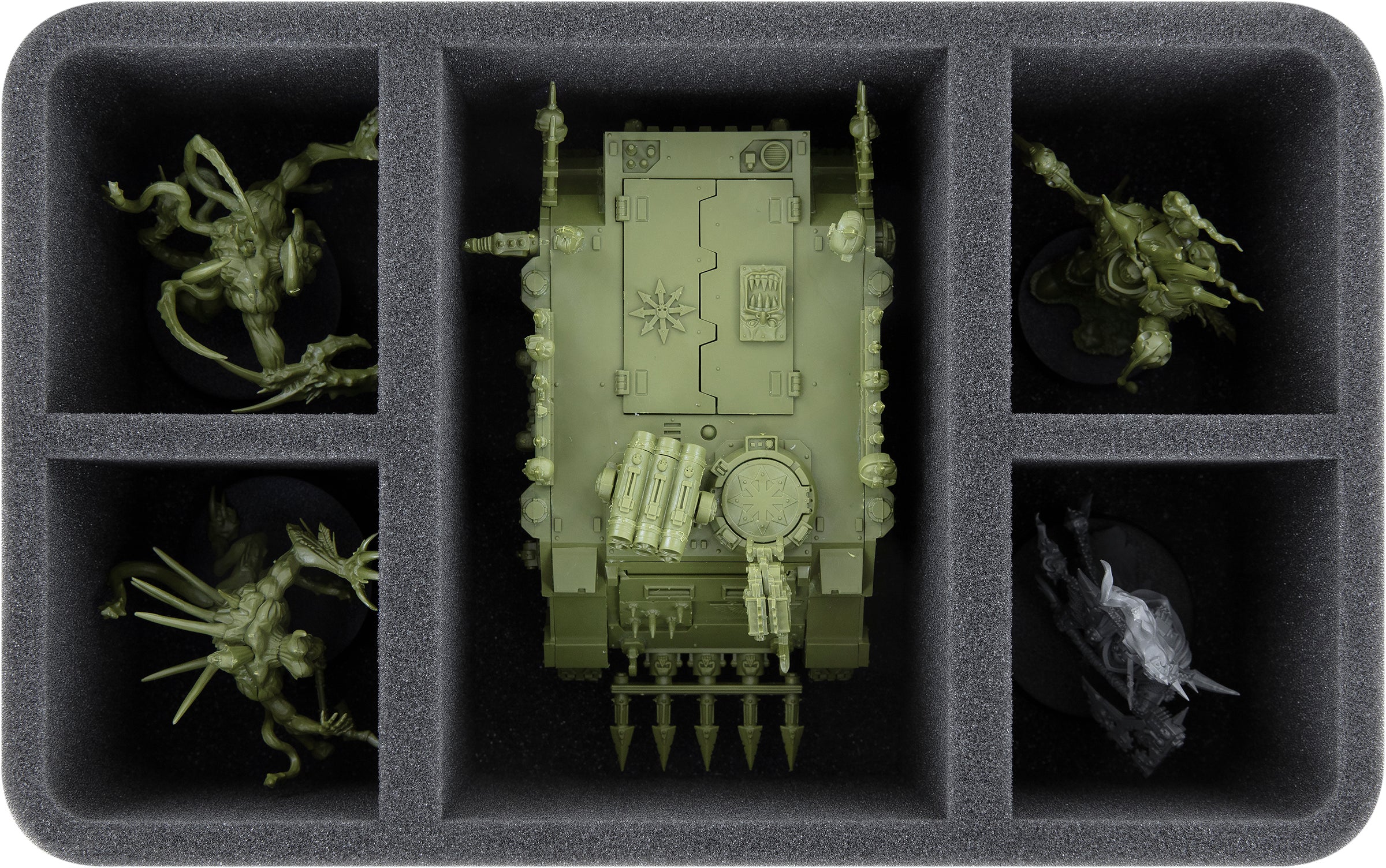 - 1 Half-Size foam tray with 5 compartments for a Space Marine Rhino, Bladeguard Veterans, Primaris Aggressors, Primaris Eradicators (HS090A002)